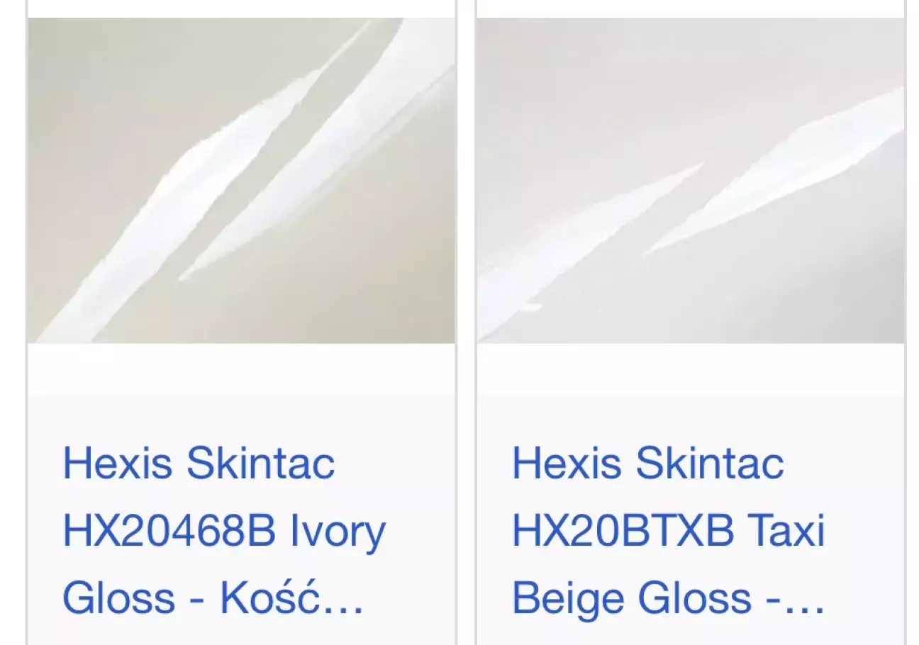 Отже, визначившись із кольором та брендом плівки (ліквідацію магазину із знижками майже 50% на всі товари я просто не міг собі дозволити пропустити) я опинився перед вибором з двох кольорів від Hexis: Taxi Beige та Ivory Gloss.
