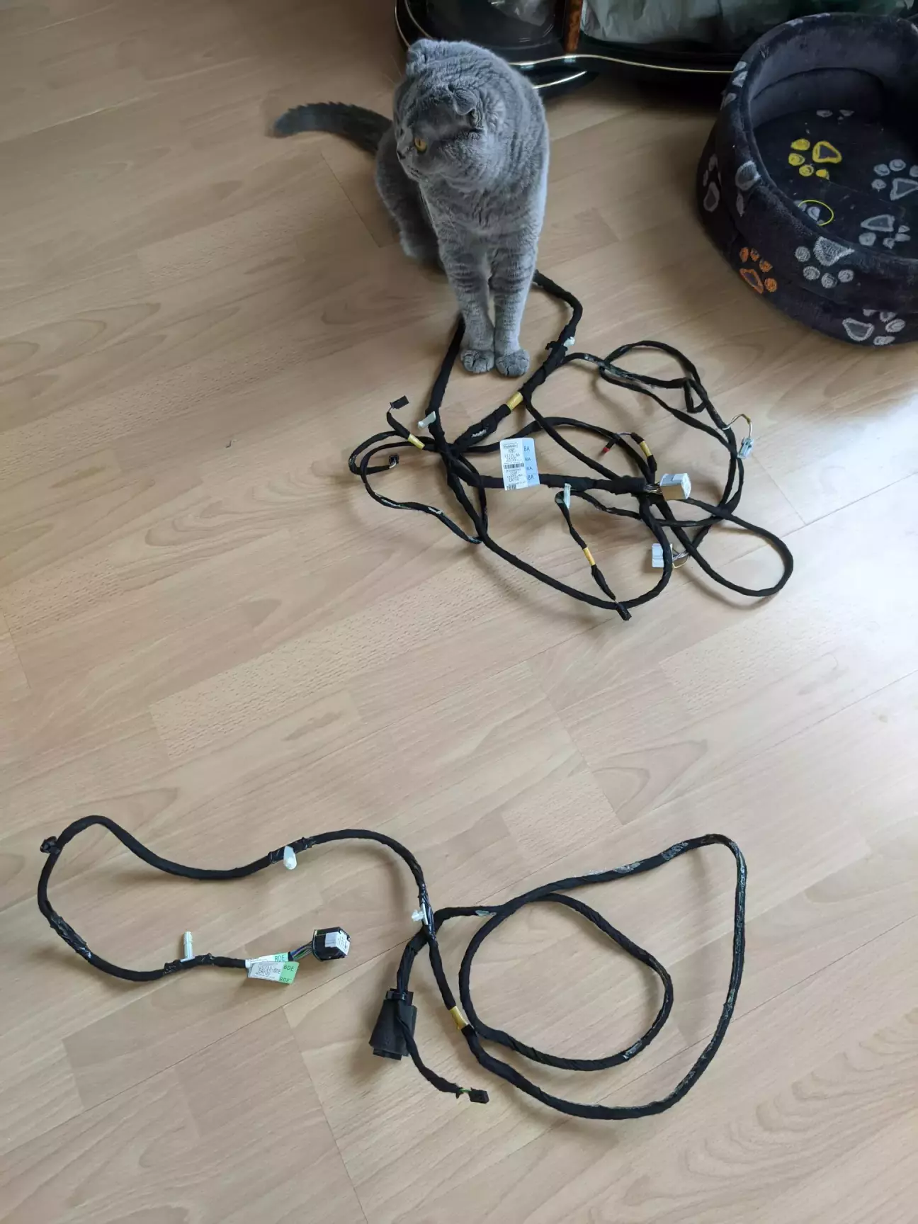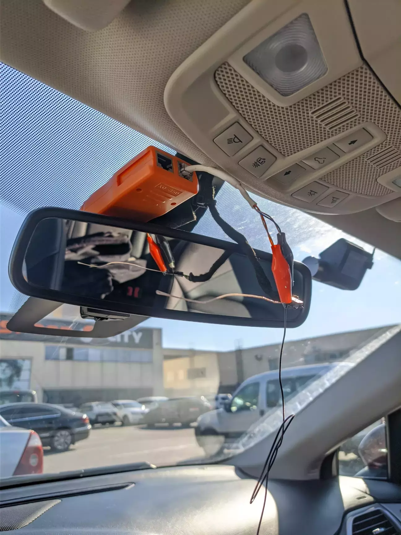 Проводка прокидується від дзеркала до роз'єма за бардачком. Якщо стояло таке ж саме бомж-дзеркало як і в мене, без автозатімнення і т.д., то там за бардачком на вас буде чекати штекер-заглушка зі шматком проводу, який закольцьовує CAN шину. Ту заглушку треба витягнути, ну і відповідно вставити в роз'єм штекер від проводки камери.