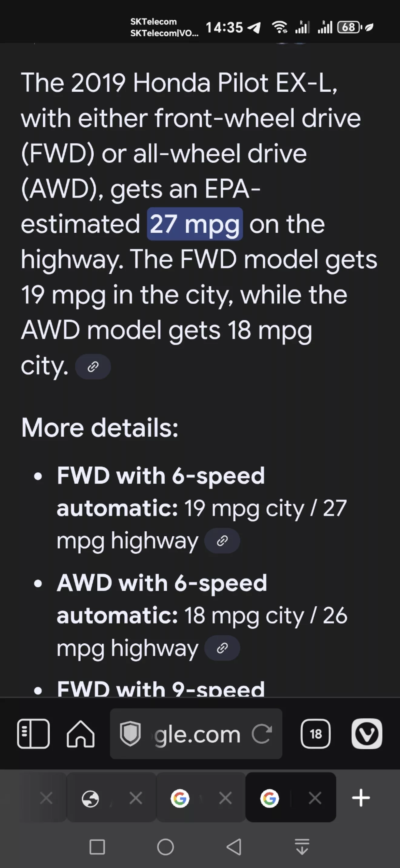 В американских источниках нашел что расход Пилота с 6ст автоматом по трассе 27 mpg в пересчёте а нормальные единицы это 9.1 литра на сотню.