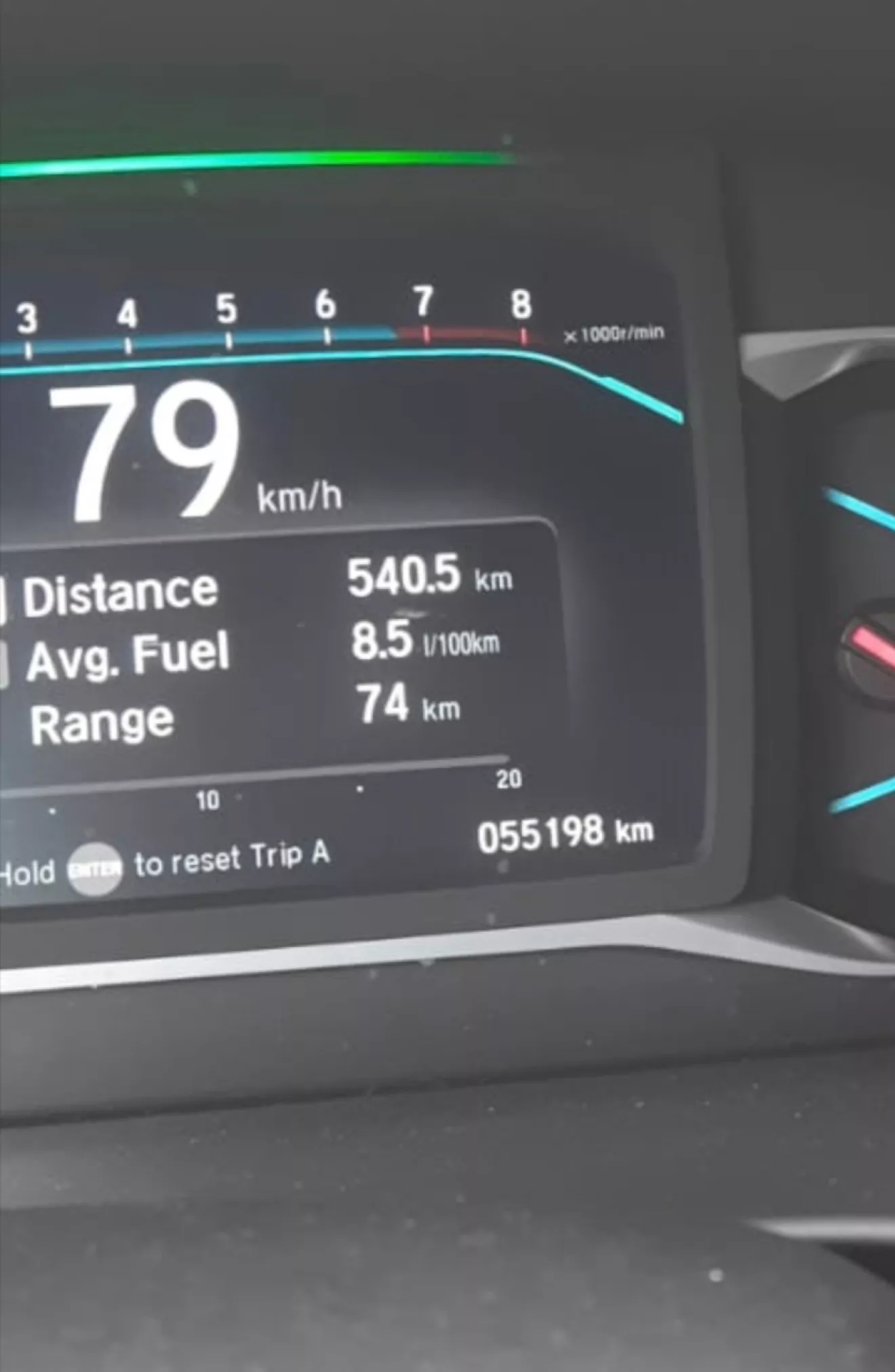 За поездку 540 км из которых около 70 км город вышло 8.5 л/100 . Чисто так показывала 7.8 при скорости 100.