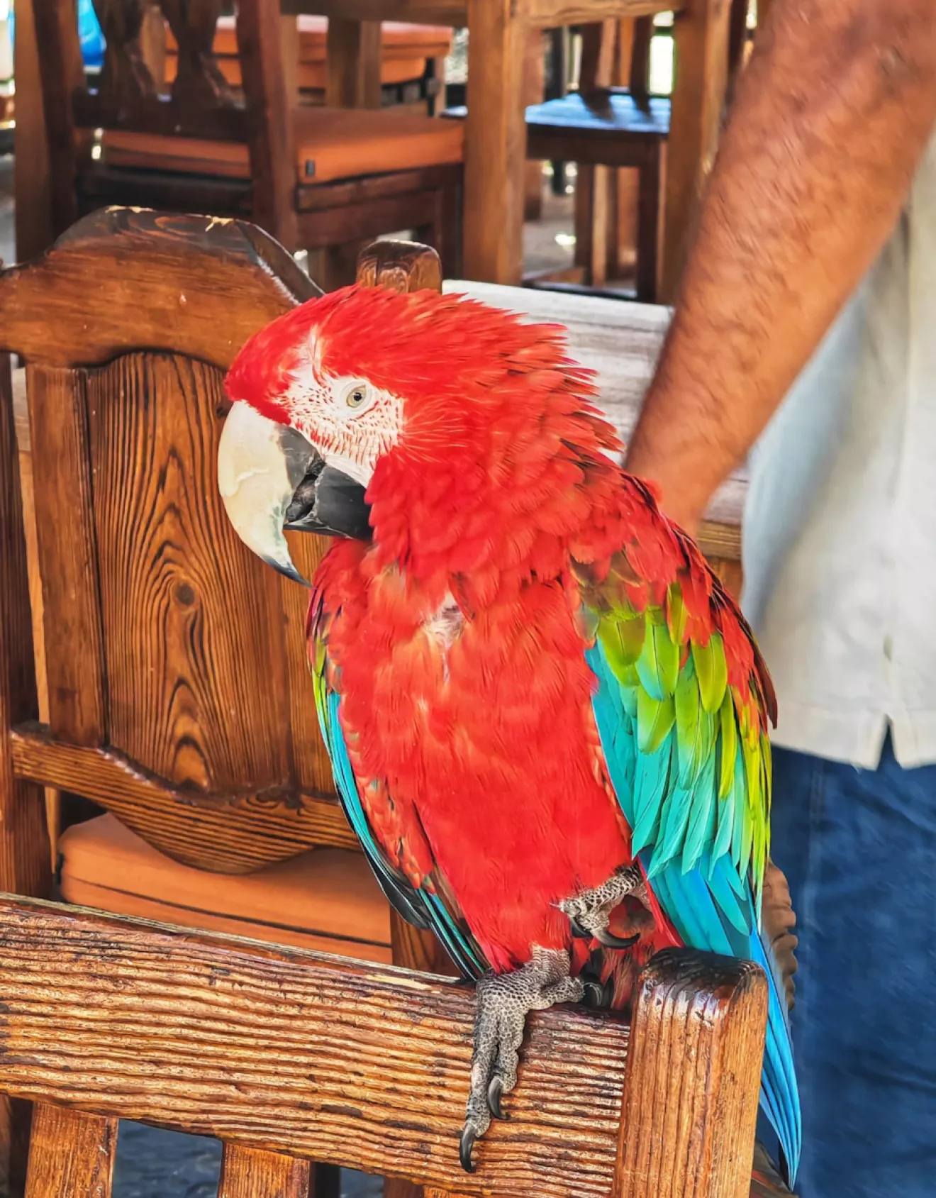 Не знаю почему но именно этот безмятежный попугай, с презрением смотрящий на окружающих его котов, очень сильно запомнился в этой поездке. Наверное потому что на Родосе мы уже не первый раз.