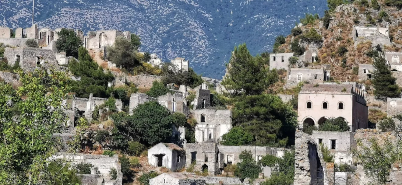 История города-призрака начинается в далеком средневековье, когда он был основан греками-поселенцами а стал непосредственно признаком он в начале 20 века, когда после первой мировой греки решили вернуть у ослабевшей после войны Турции часть города Эгейского побережья и потерпели поражение от армии Ататюрка.