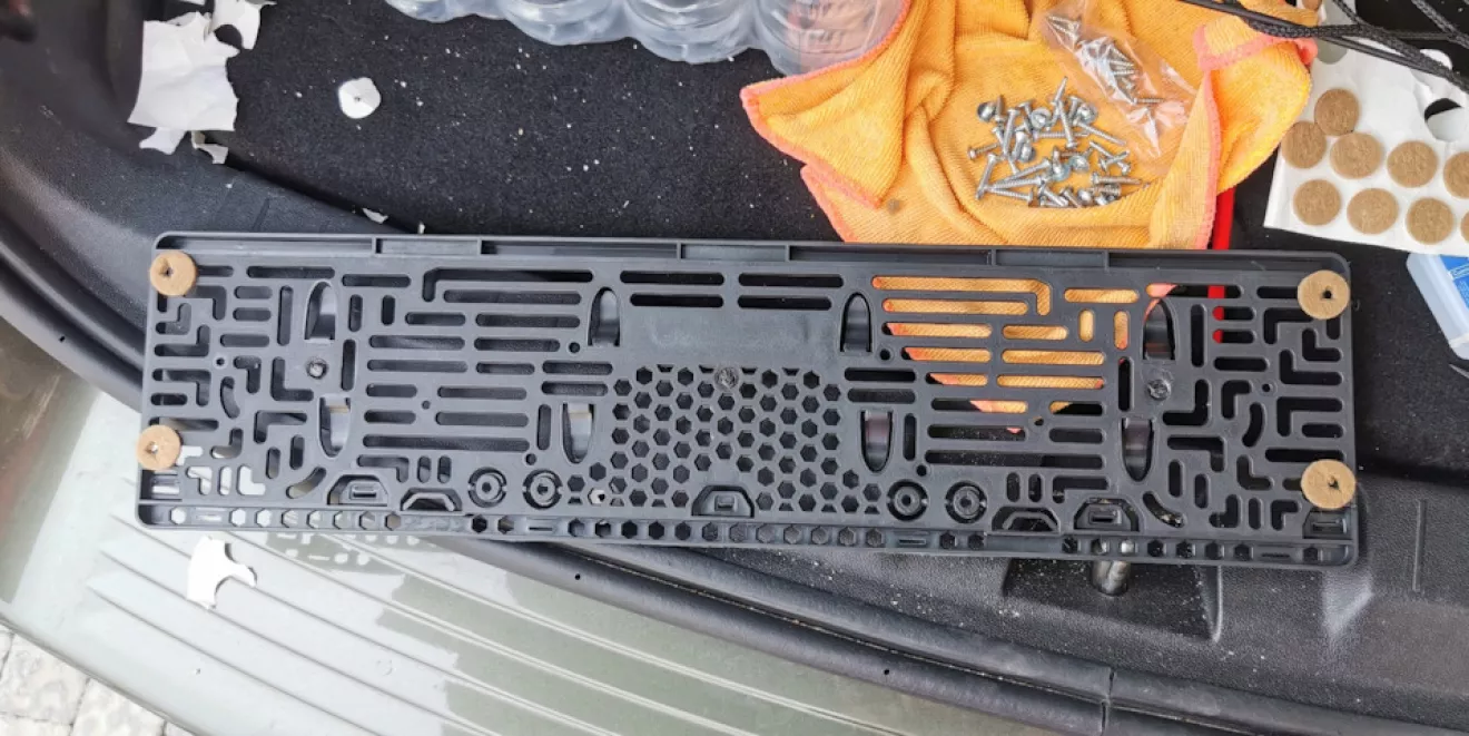 Ещё на глаза попалась рамка номера с эмблемой Додж, вспомнив о том, что передняя рамка уже два раза клеена то новая пришлась к месту