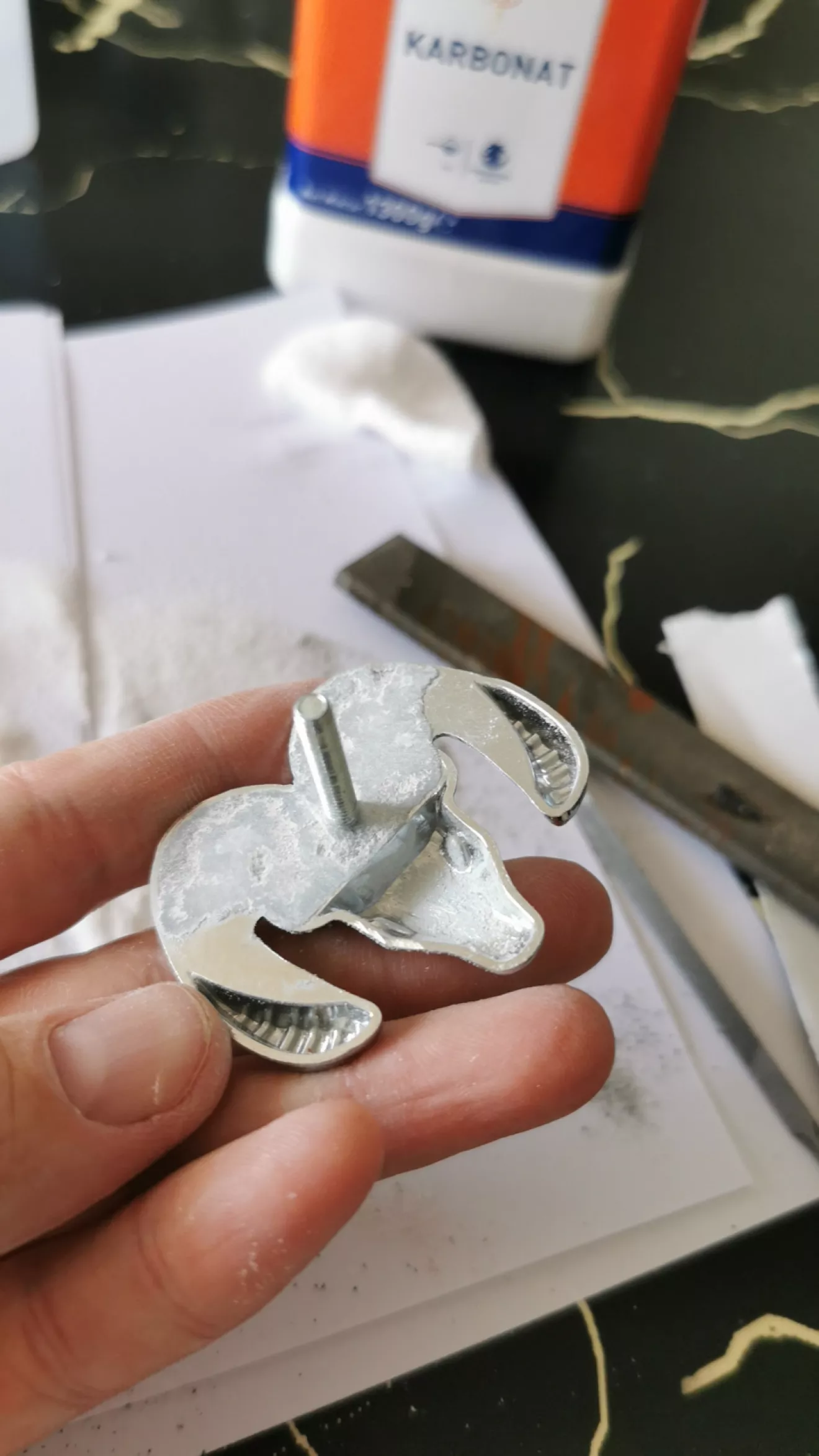 После чего надфилем убираем неровность застывшей соды и убиваем сразу двух зайцев, первое это увеличиваем площадь соприкосновения и второе это превращаем болт в дополнительную страховку.