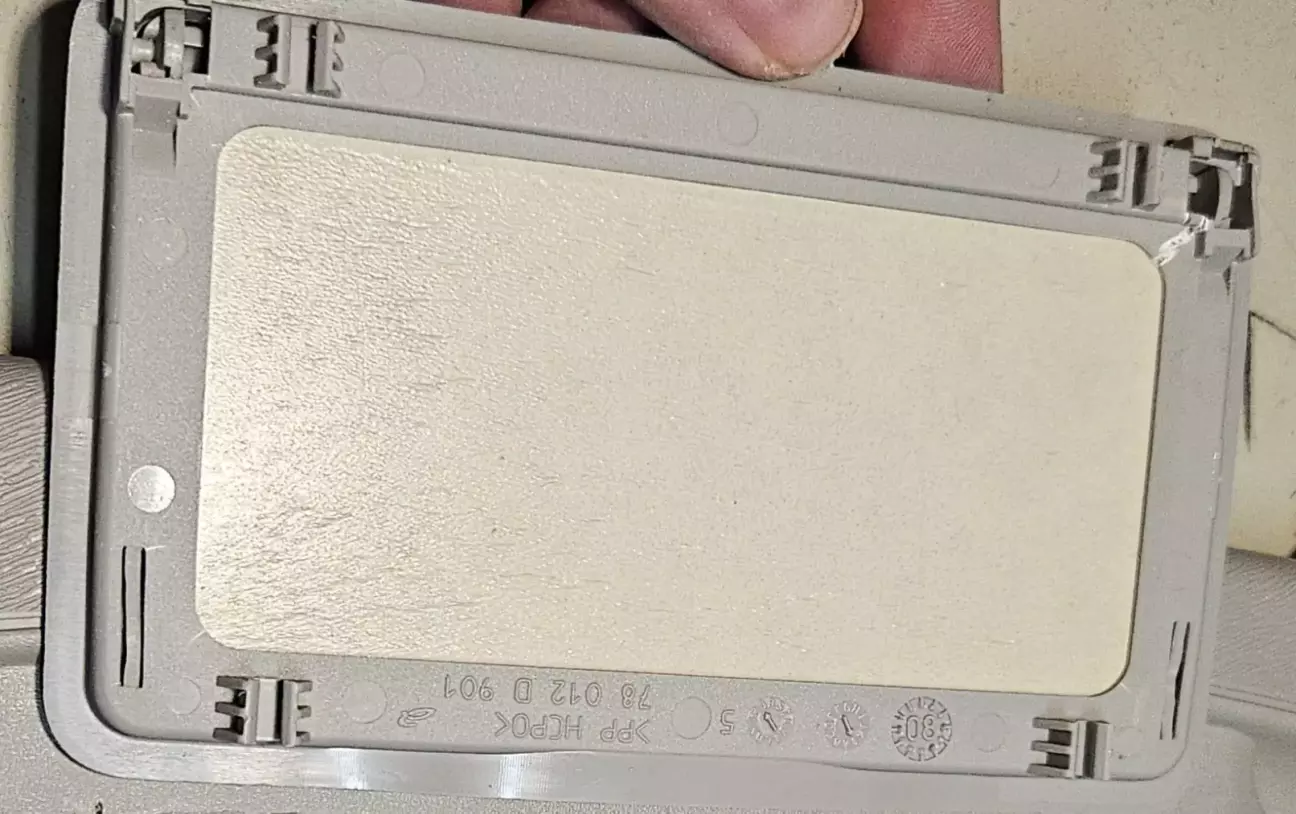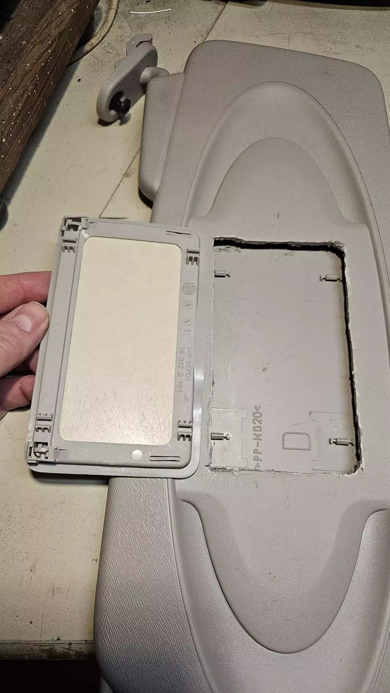 2. Демонтуються дзеркальця із козирків акуратно за допомогою пласткового важіля по чотирьох кутах. Тримаються на маленьких кліпсак/заклацках.