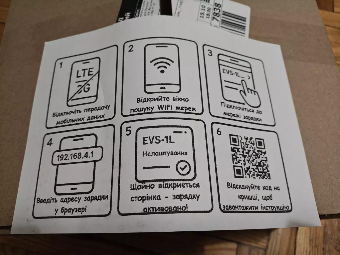 Також у коробці була коротенька інструкція по підключенню зі смартфона для використання зарядки через wi-fi.