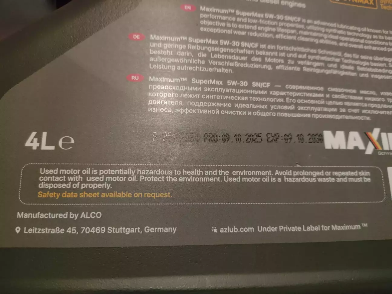 Собсно о масле. Maximum — нравится. Напомню, что это суббренд азербайджано-немецкого предприятия Aminol-ALCO.