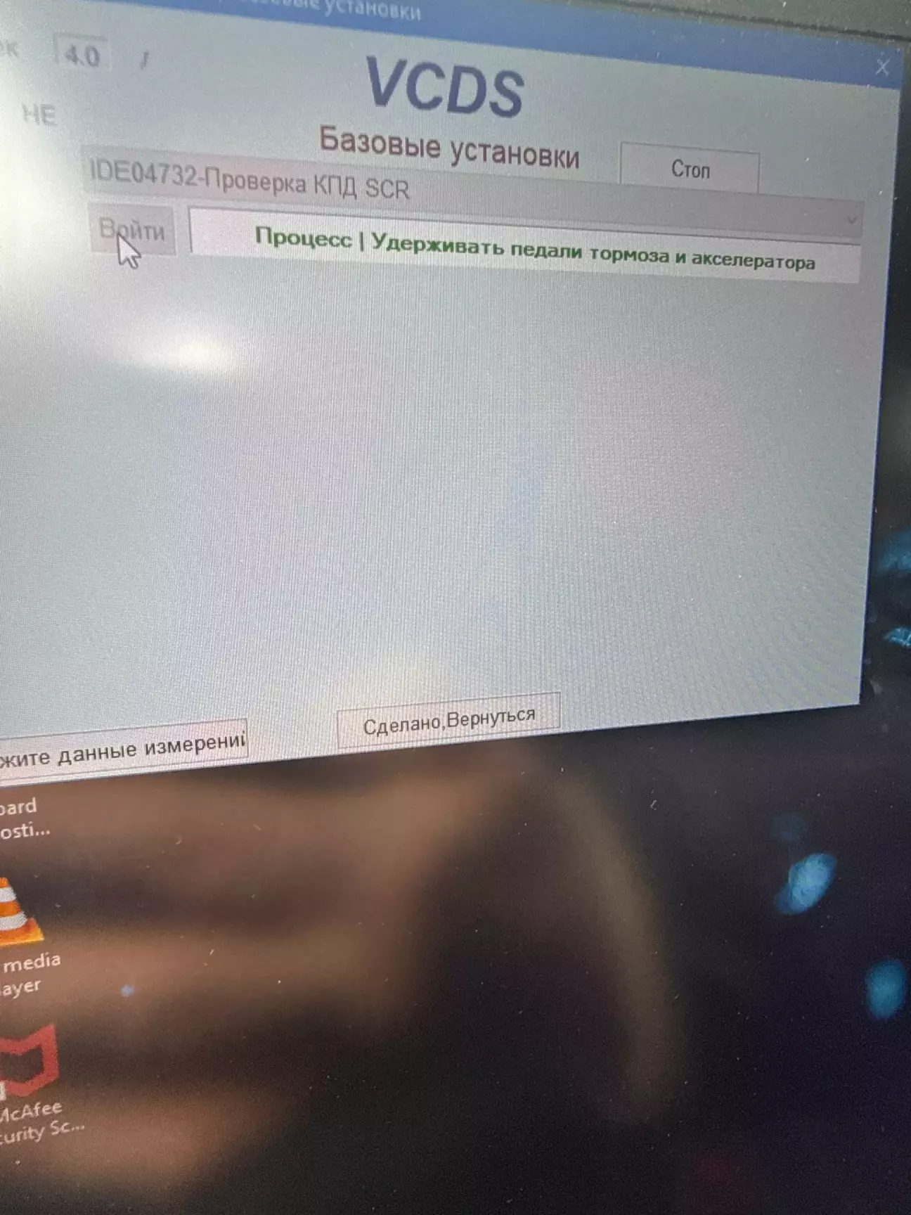 система попросить натиснути педалі гальма і газу, і тримати їх натиснутими до повного завершення процесу
