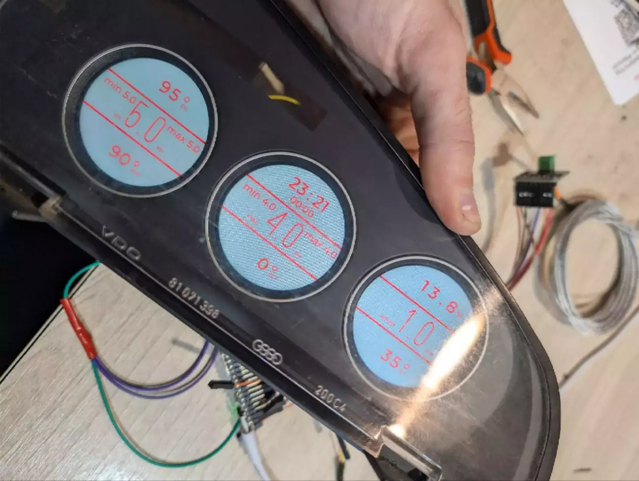 Але полежав, подрімав, подумав — і дійшов висновку, що три окремі показометри теж не варіант: толку від них мало. Тож ті ж інженери знайшли на Ali підходящі дисплейчики, замовили один — і розробка понеслась.