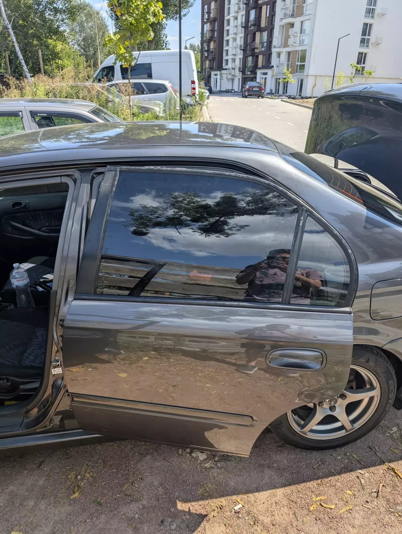 Давай все ставить назад, и мой главный факап был в том что я оставил новое стекло на простыне под солнцем, в то время пока раз рад дверь...