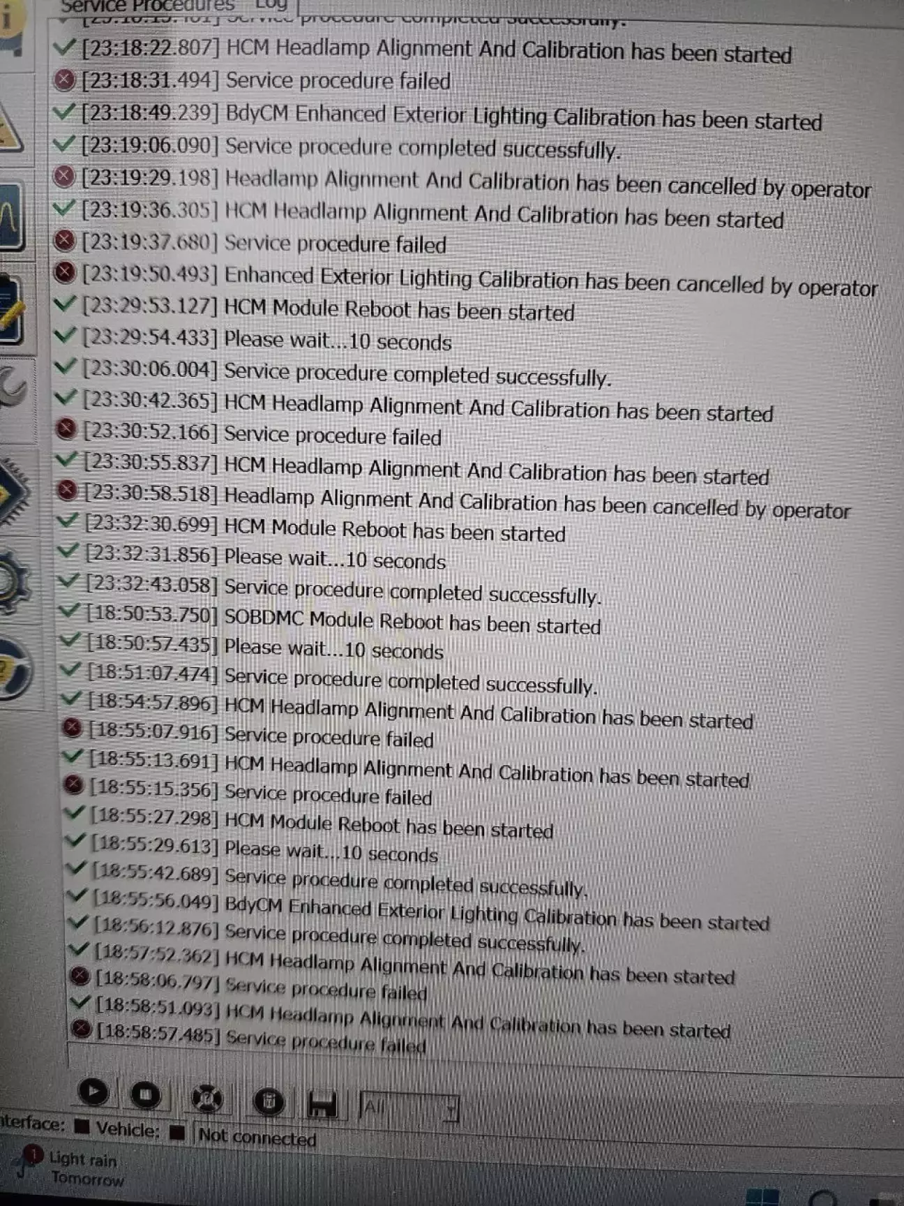 У меню сервісних процедур HCM обираємо Headlight alignment and calibration, далі виконуємо всі дії згідно з інструкцією у FORScan.