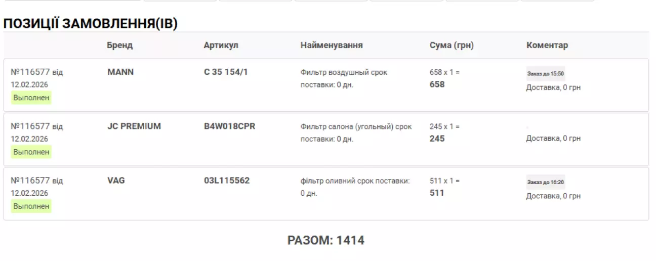 У період з 16 по 18 лютого 2026, на пробігу 142 758 км, провів чергове ТО (пробіг від попередього (136 110 км) - 6 648 км)