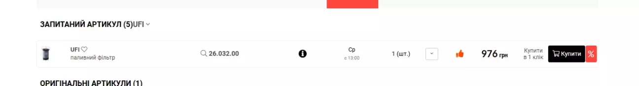 Тому, оперативним шляхом, за допомогою друга був підібраний повний аналог оригіналу, а саме UFI 26.032.00 ( він же, йде і в оригіналах, тільки з додатковим клеймом ВАГ)