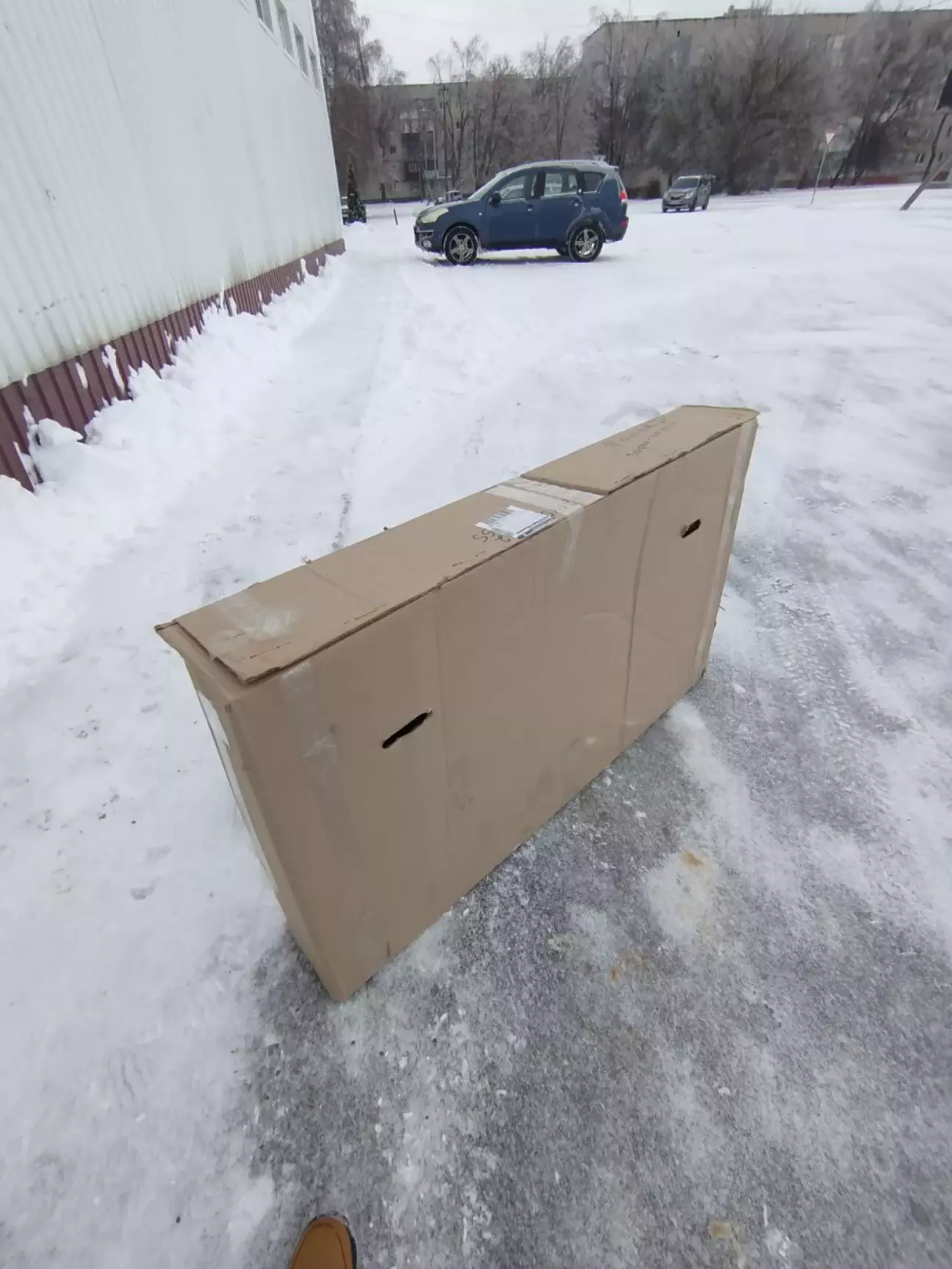 Моя Славута повністю вкрилася льодом у дворі, і відчинити двері так і не вдалося. Тож довелося телефонувати другові, щоб допоміг довезти велосипед додому.