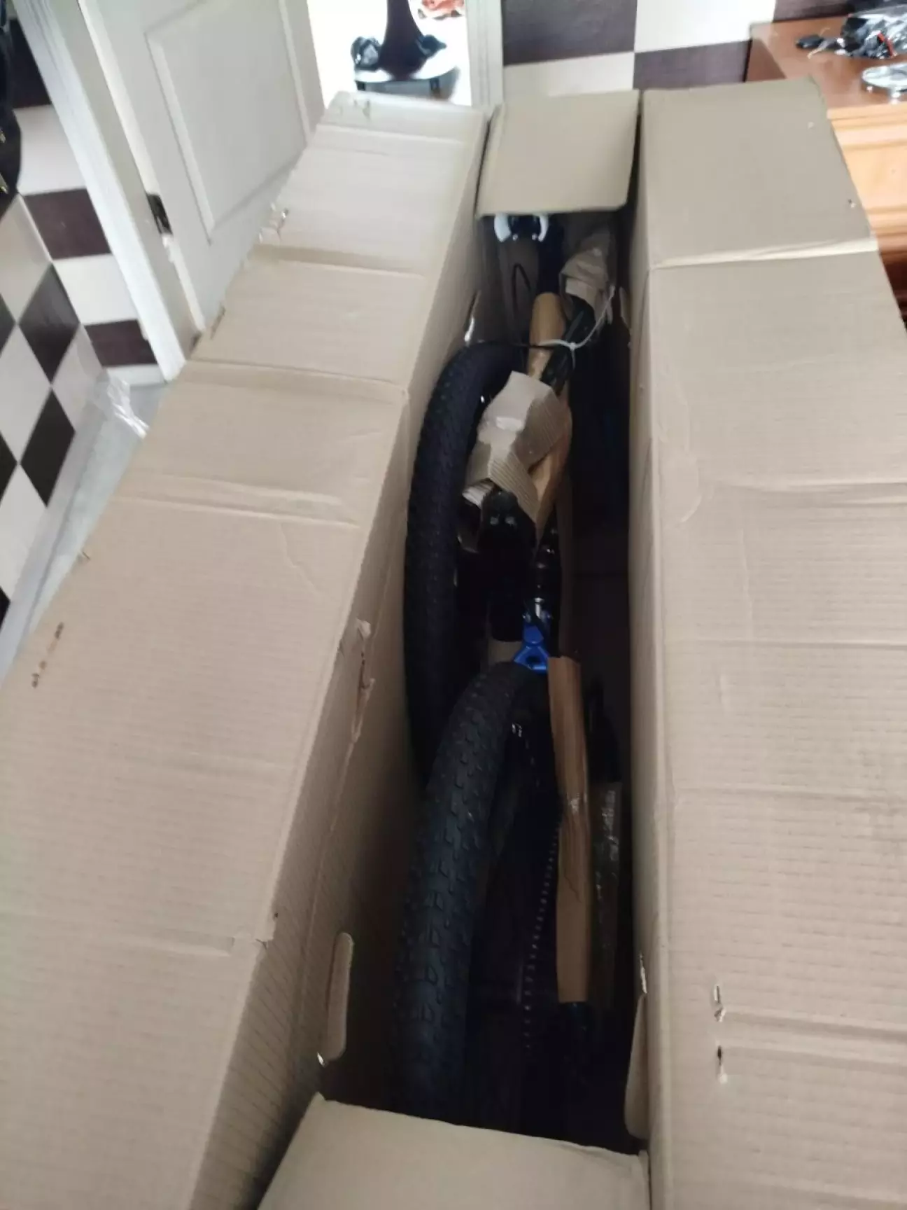 На щастя, у нього Chevrolet Captiva. Склавши задній ряд сидінь, через багажник ми таки запхали коробку з велосипедом — і вирушили додому.