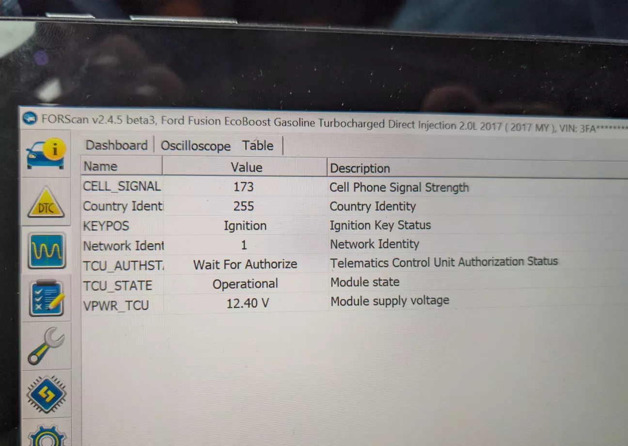 Тимчасово підкинув модем на машині, щоб створити новий профіль Форскану з модемом.