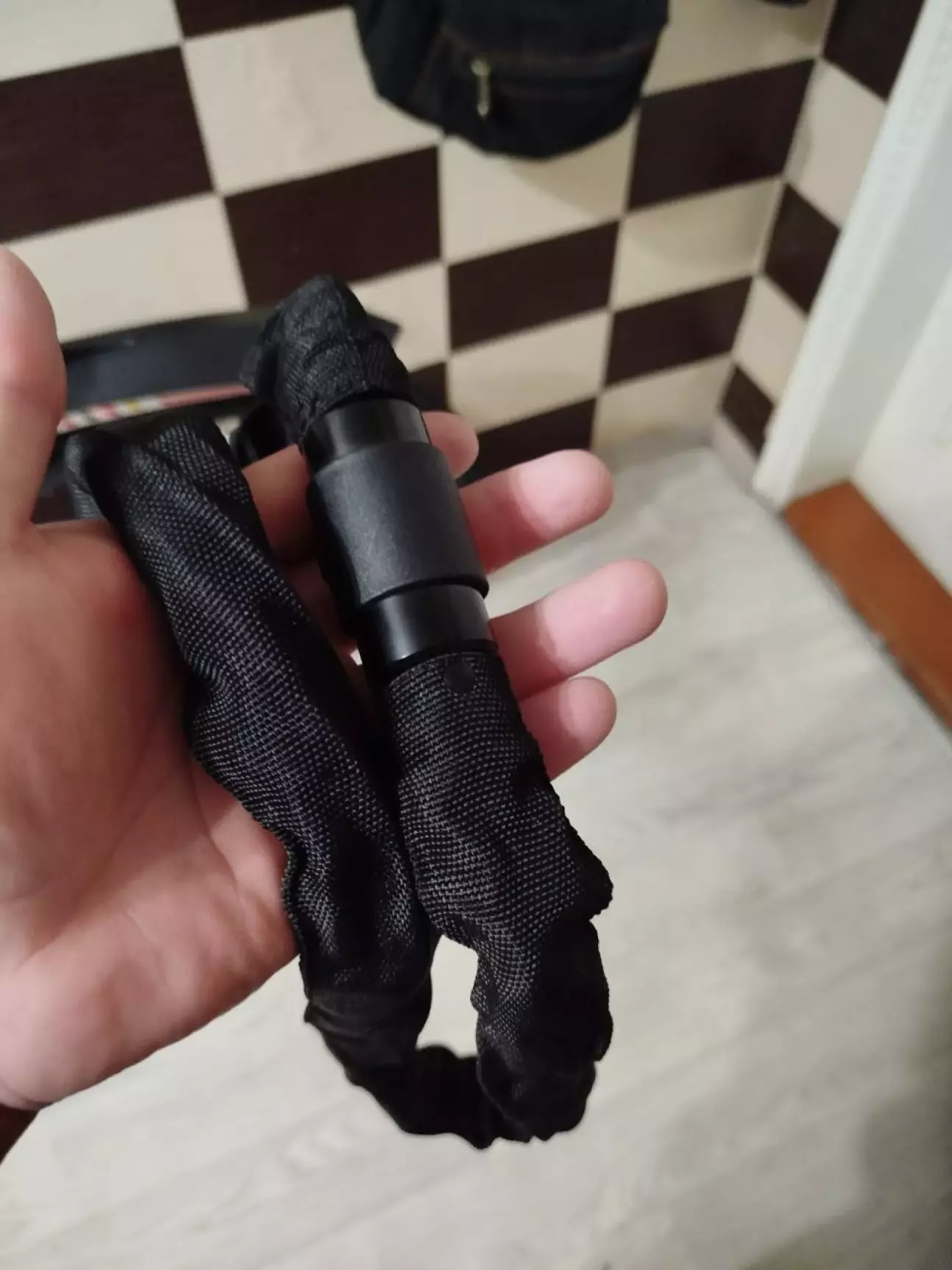 Придбав замок — ланцюг у захисному обплетенні. Ланцюг загартований, ланки зварені між собою, вага — приблизно 1,1 кг. Конструкція доволі масивна.