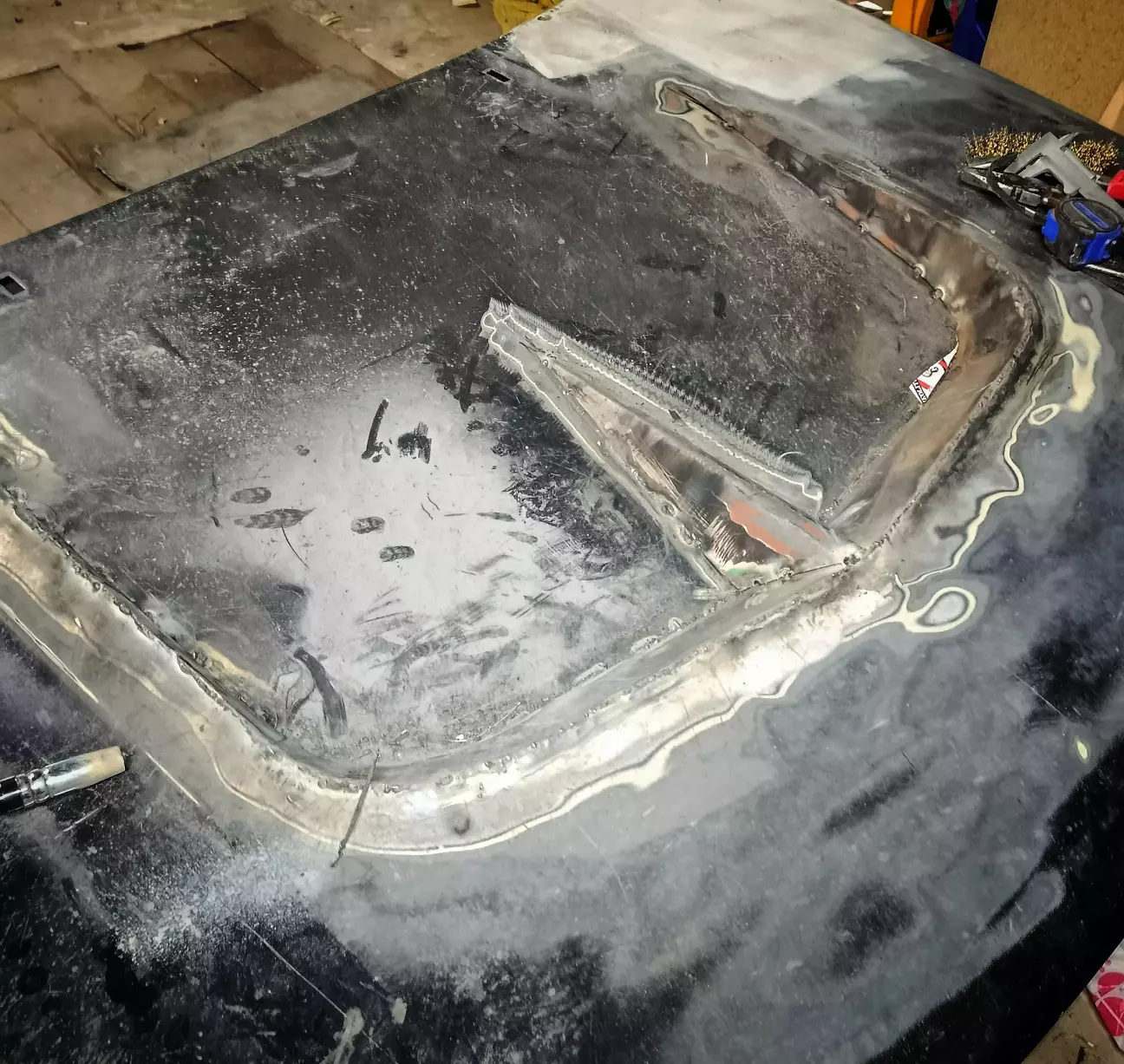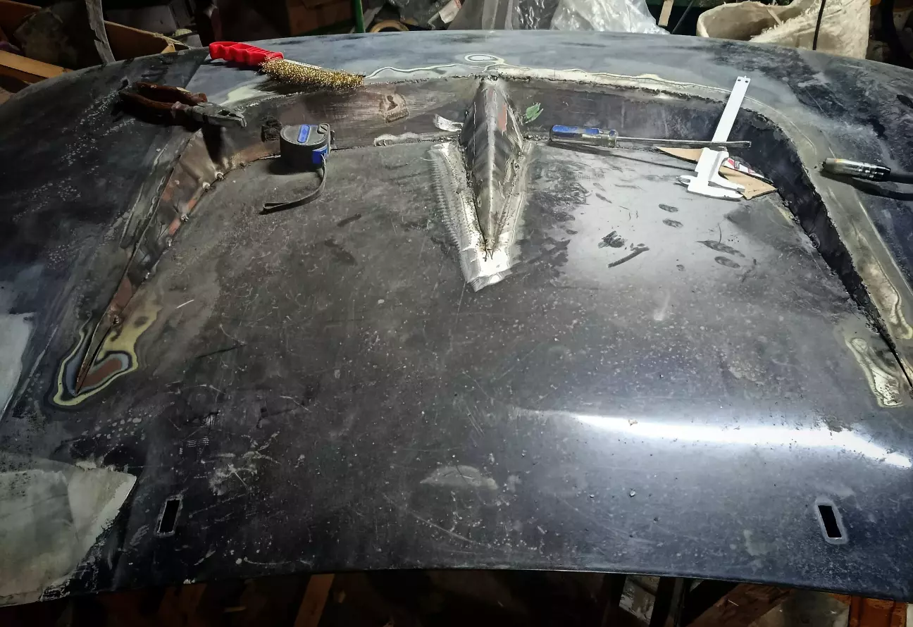 С приходом тепла в гараж буду заливать чаще, и надеюсь у лету капот станет на свое законное место, осталось все обварить зачистить шпаклянуть и сделать низ капота в стиле "бед бой"...