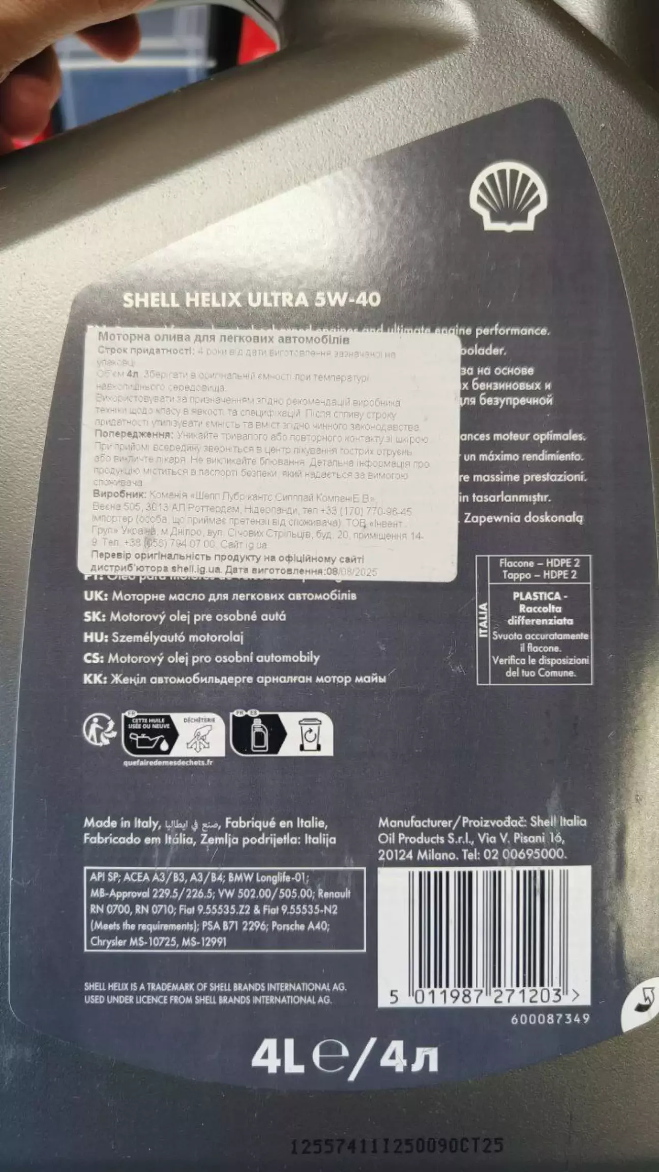 1) Моторна олива SHELL HELIX ULTRA 5W40