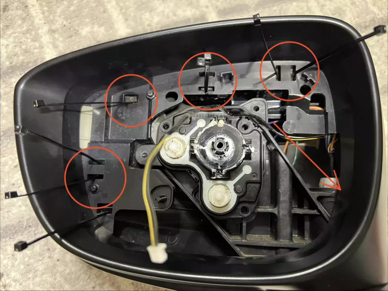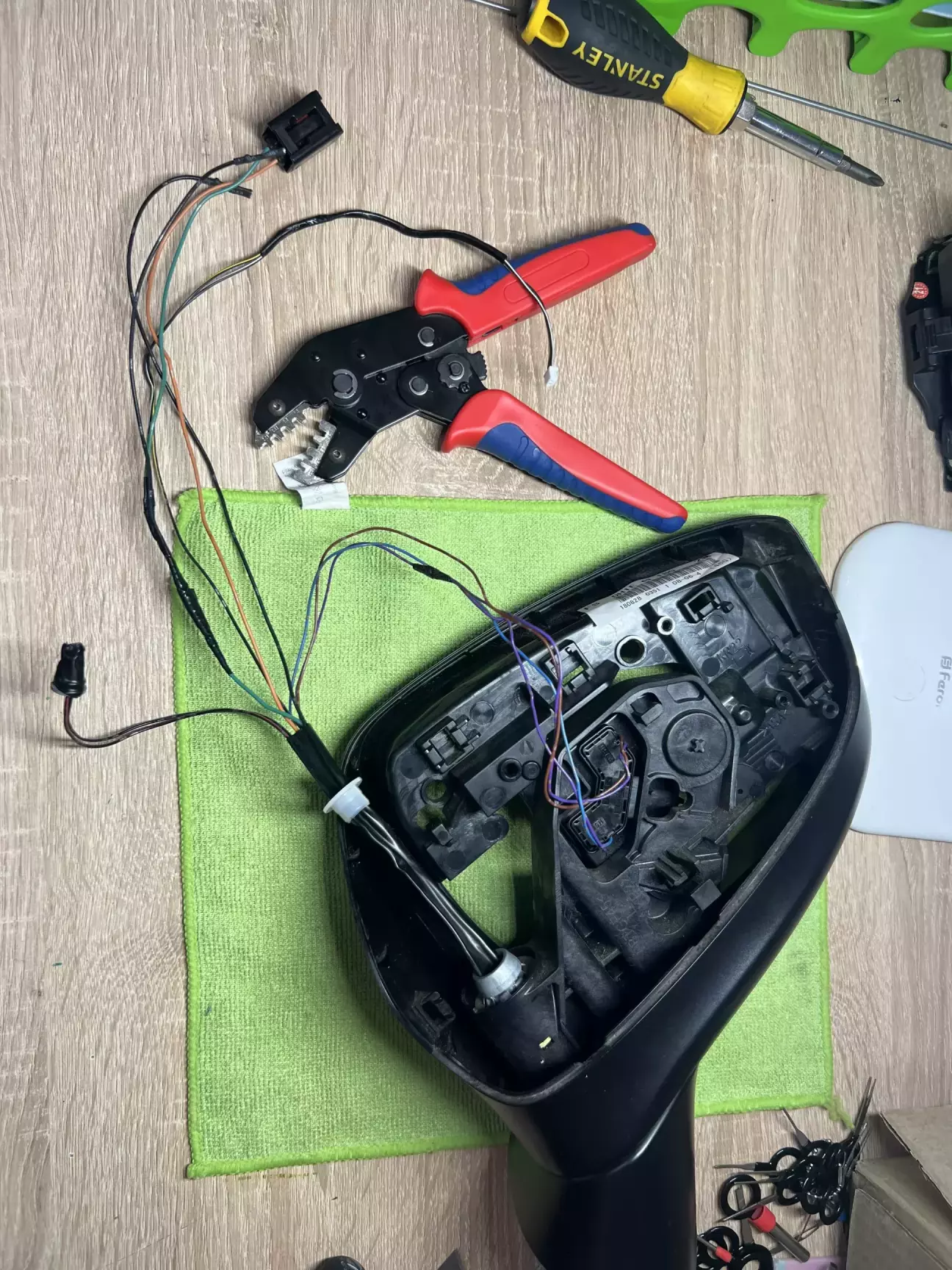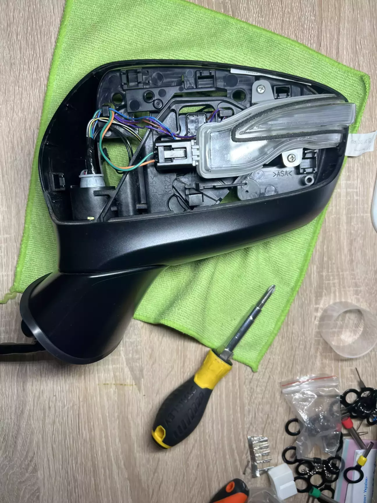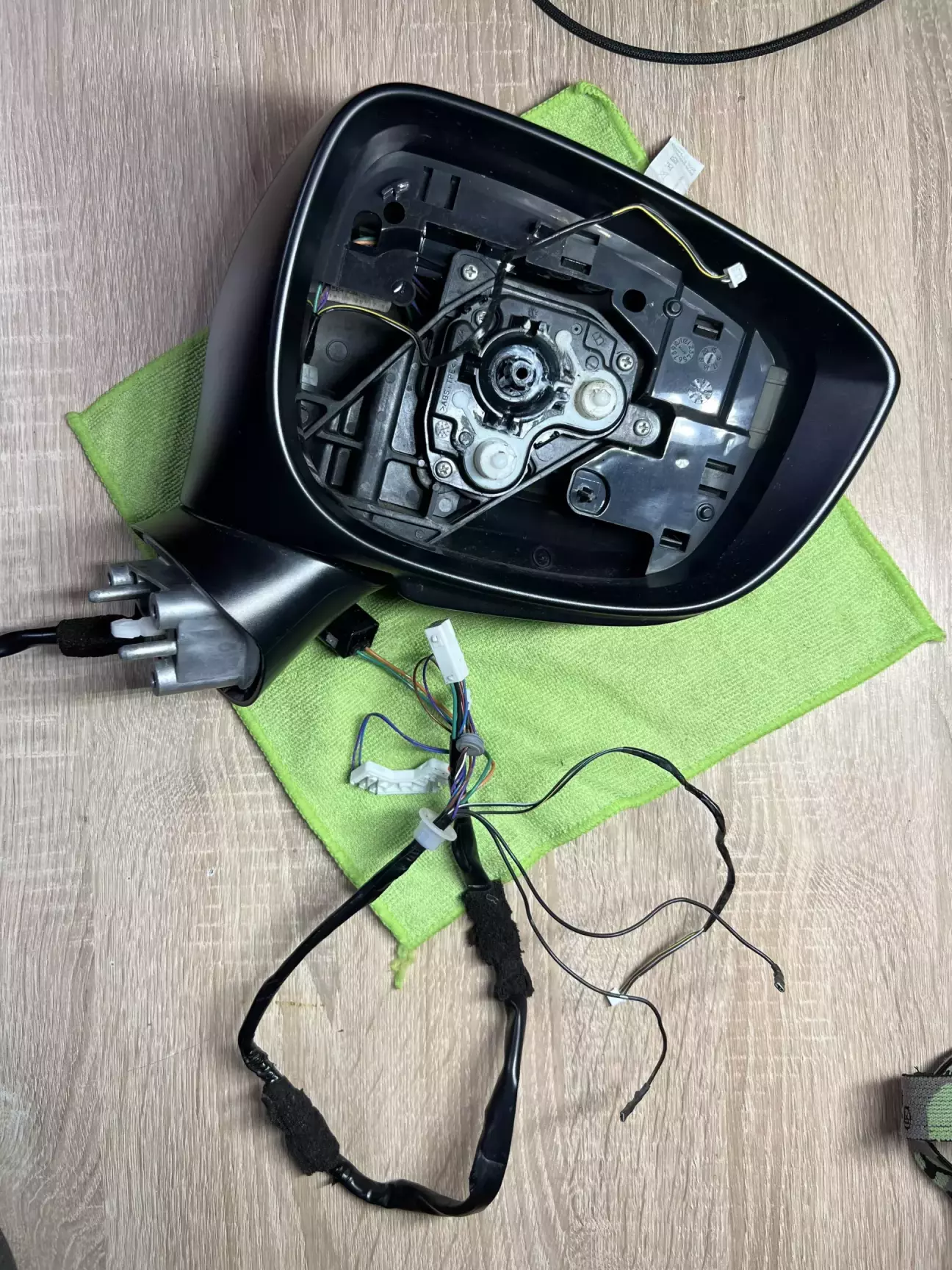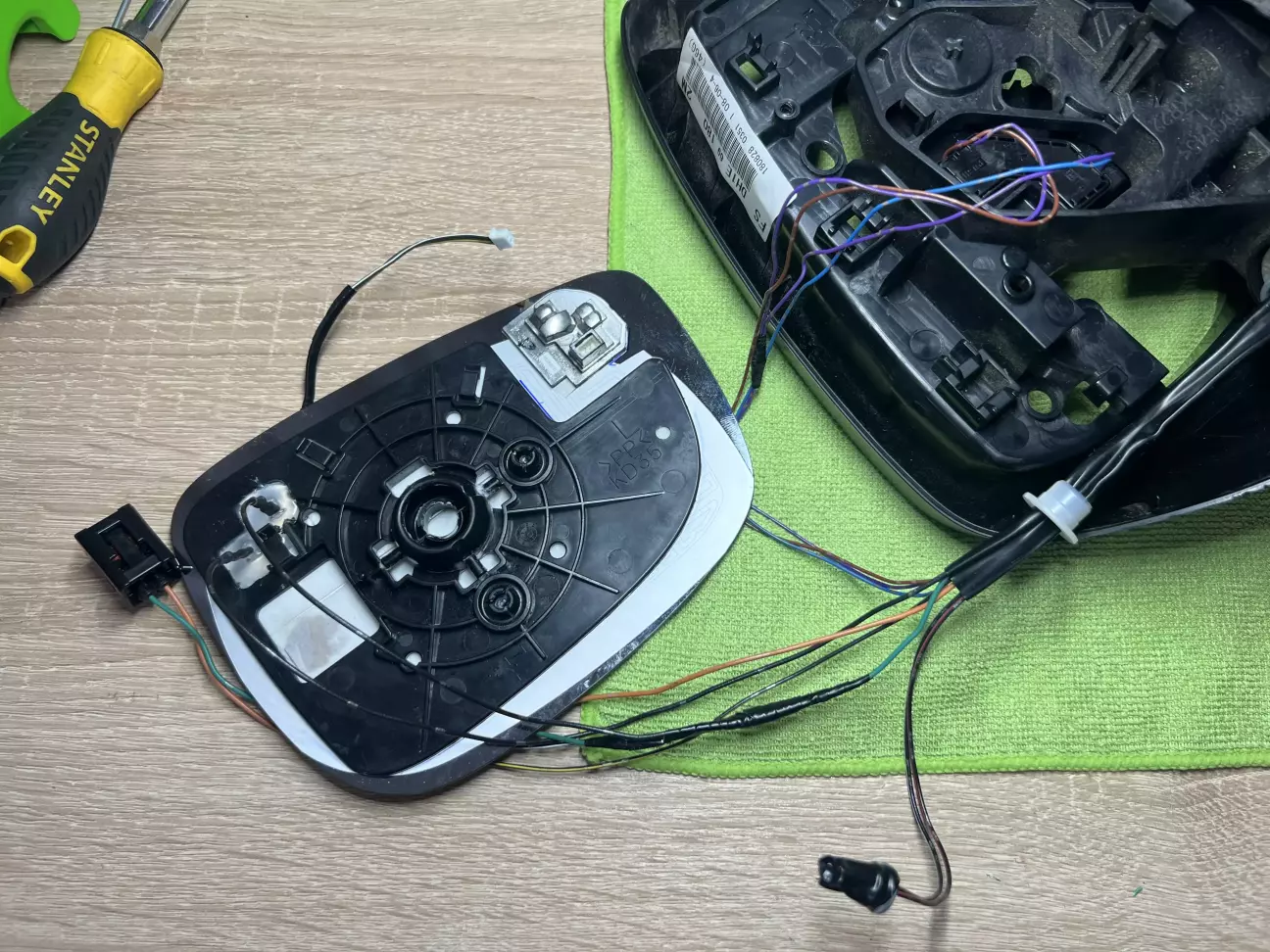 Зняв ліве дзеркало з машини та заніс до дому, щоб розібрати та зробити проводку дзеркала під підігрів дзеркал.