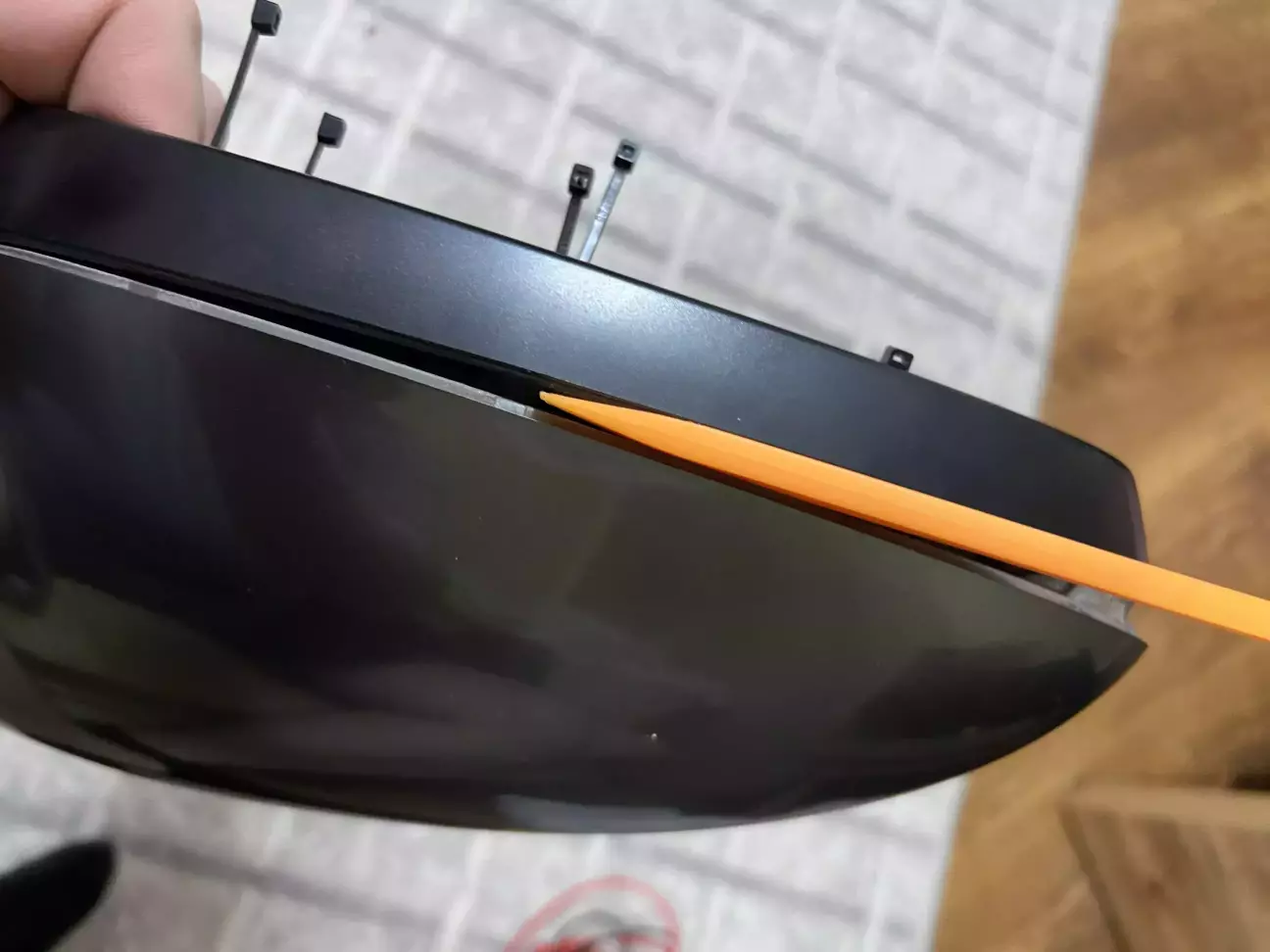Далі знімаємо верхню декоративну кришку дзеркала за допомогою пластикових стяжок.