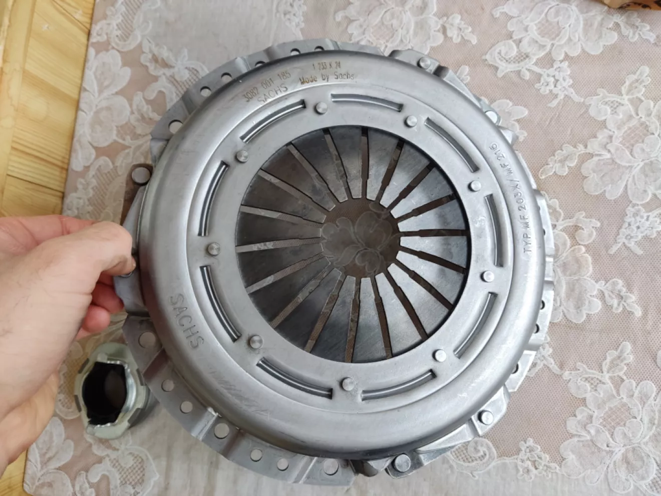 При замене сцепы на Sachs меняли ещё за маховиком задний сальник коленвала 21443-2B020, то есть снимали маховик. Так же менял вилку (вместо 41430-23200 взял аналог 1281F-IX35, на вид такая же, только дешевле) и опорный грибок 41471-32000 на всякий.