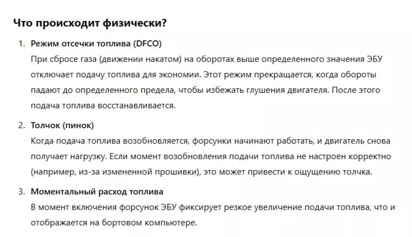 Эксперементально отловил что при езде накатом при падениии оборотов до 1100-1300 об/мин идёт быстрое увелечиние показаний расхода топлива. Если включить показания моментального расхода топлива, на разных передачах на прямой и хорошей дороге покрутить до 2500-3000 об/мин, потом отпустить ногу с газа и посмотреть на показания расхода и накатом докатитьсься до 1000 об/мин примерно, то будет толчек и бортовик зафиксирует увеличение расхода. У меня с прочерков или малого расхода в момент пинка расход сразу вырастает до 5-7 литров.