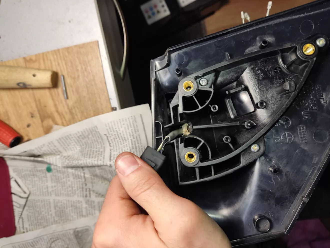 Сейчас всё работает и на своём месте, механизм складывания работает как надо. Единственное что усилие для складывания чуть-чуть легче, чем на правом зеркале, возможно надо было чуть сильнее дотянуть гайки внутри на пол оборота — оборот, хотя не болтается и не дребезжит.