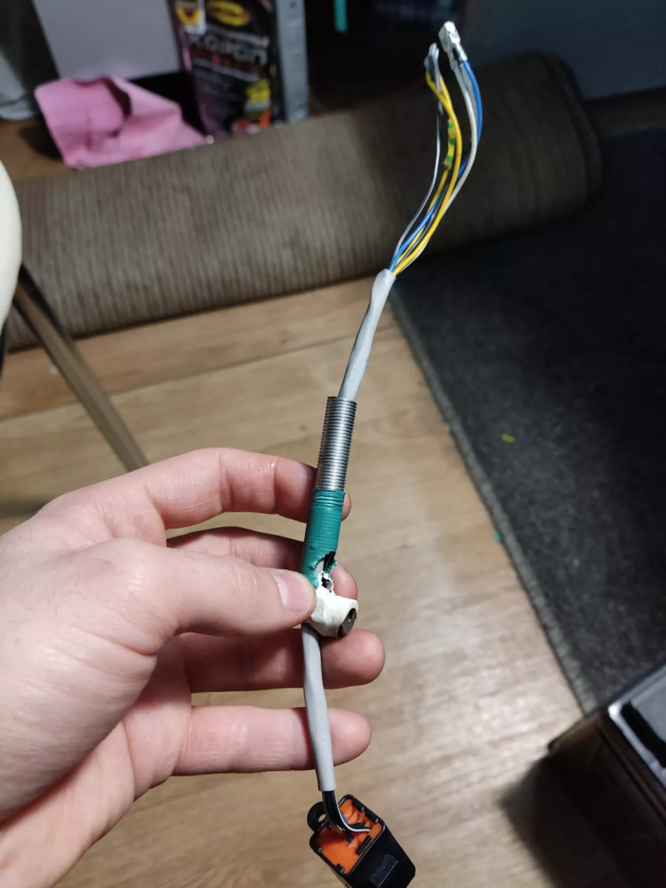 — не обжимать в термоусадкой ибо она при оставании становится прям очень дубовая, заводская была мягче, но с ней нельзя было протянуть провод в трубку. Лучше бы изолентой обматал бы аккуратно.
