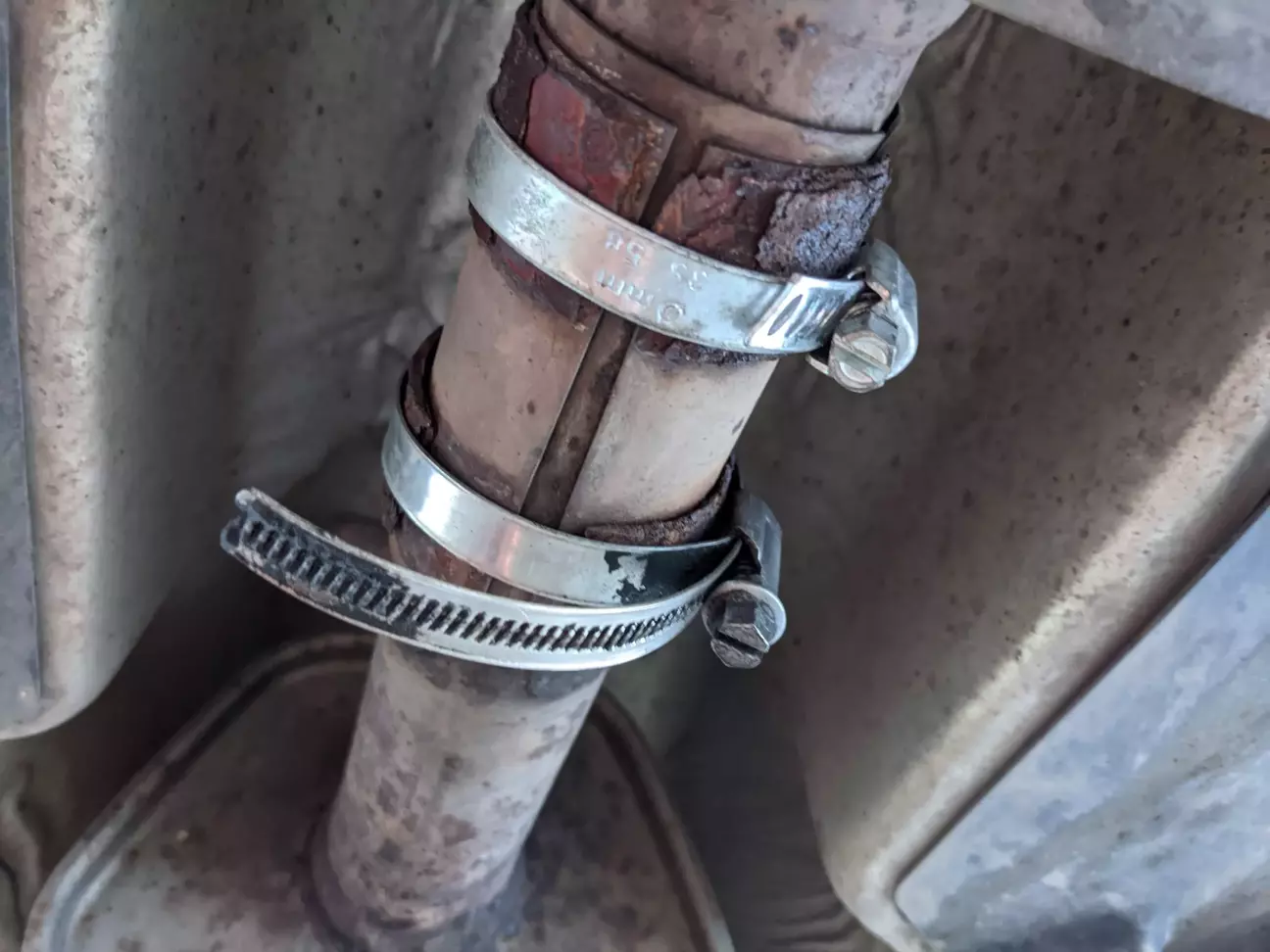 Майже одразу після покупки авто, треба було одразу пофіксити деякі моменти. Один із них це подвійний хомут, так як у старого ваговського просто згнило кріплення і звук вихлопу був гучний і просто огидний.