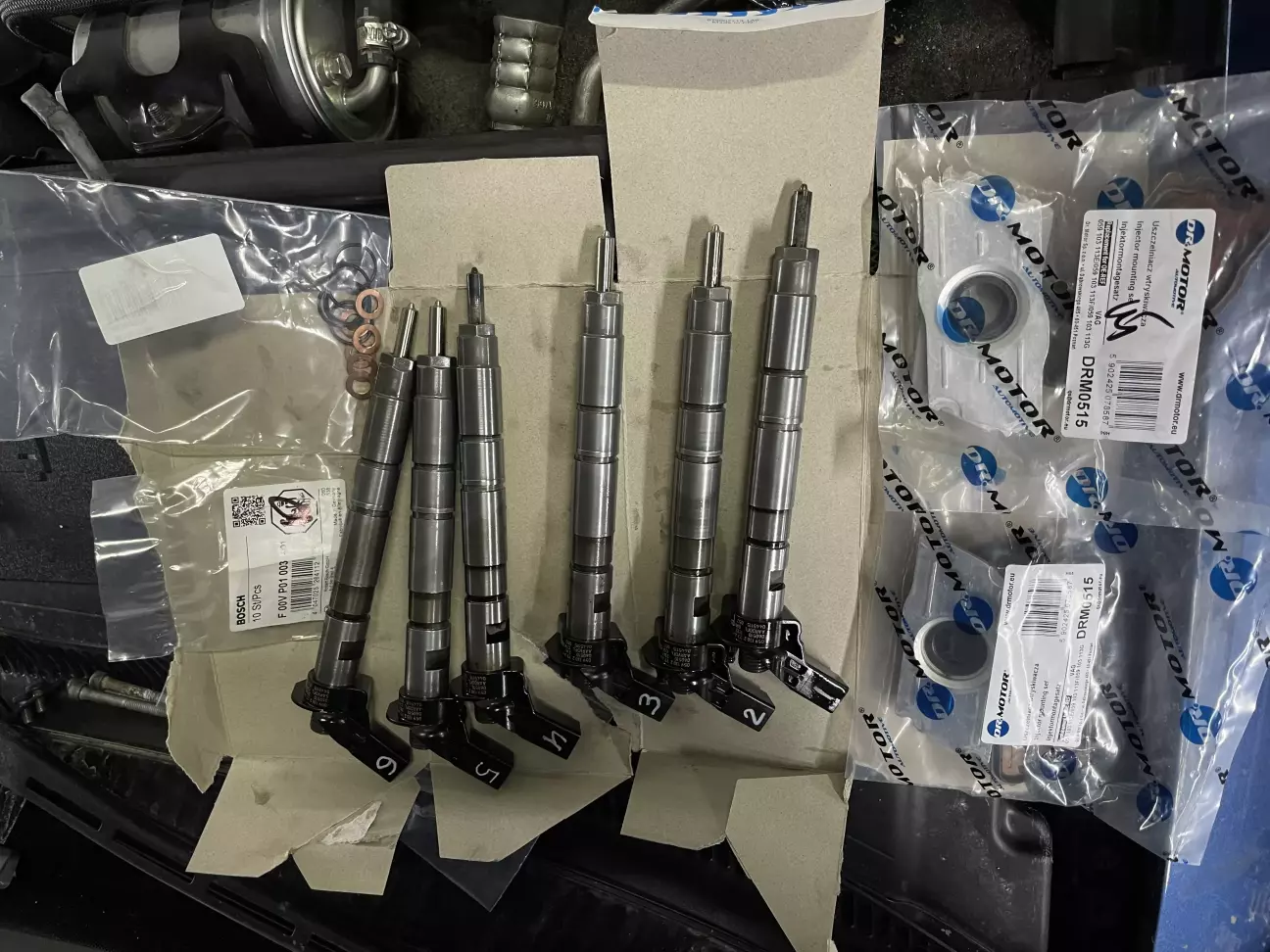 Так як заміна датчика тиску оливи не забрала підтікання масла в розвалі, було прийнято рішення повністю пере пакувати розвал. Попутно було знято форсунки, на чотирьох замінено розпилювачі, вони не доливали в максимальних режимах. Також замінено прокладки клапанних кришок, кришки форсунок та всі гумові прокладки які знімались. Одразу було викинуто теплообмінник egr із самим клапаном.