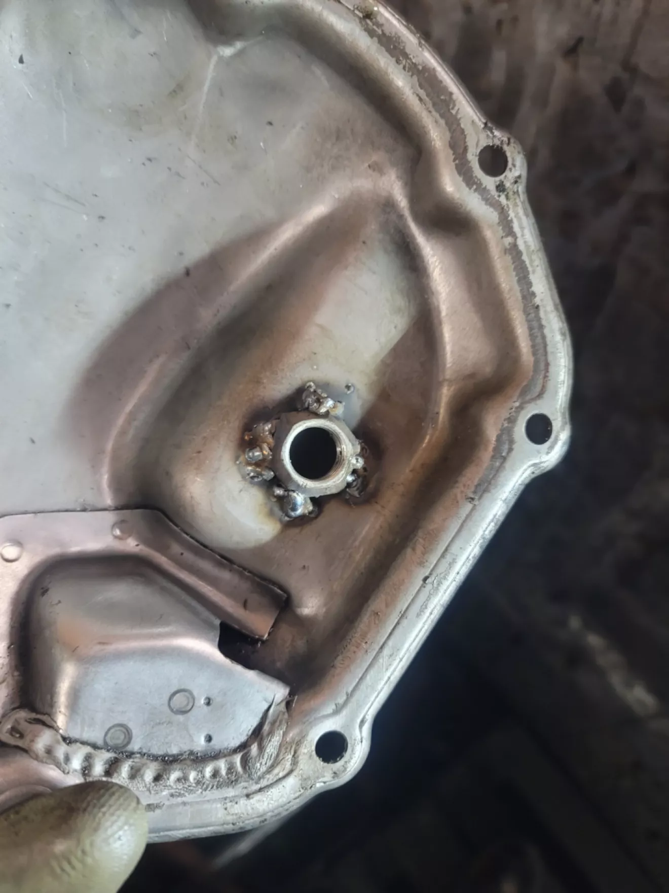Решил поменять масла в мостах, коробке и раздатке. Начал с передней части автомобиля, а именно передний мост. Оказалось сорванная резьба на заливной горловине которая держалась на герметике. Принял решение снимать крышку и вотанавливать резьбу. Снял и увидел выштамповку которую убрал и на её месте подобрал гайку после чего благополучно приварил.