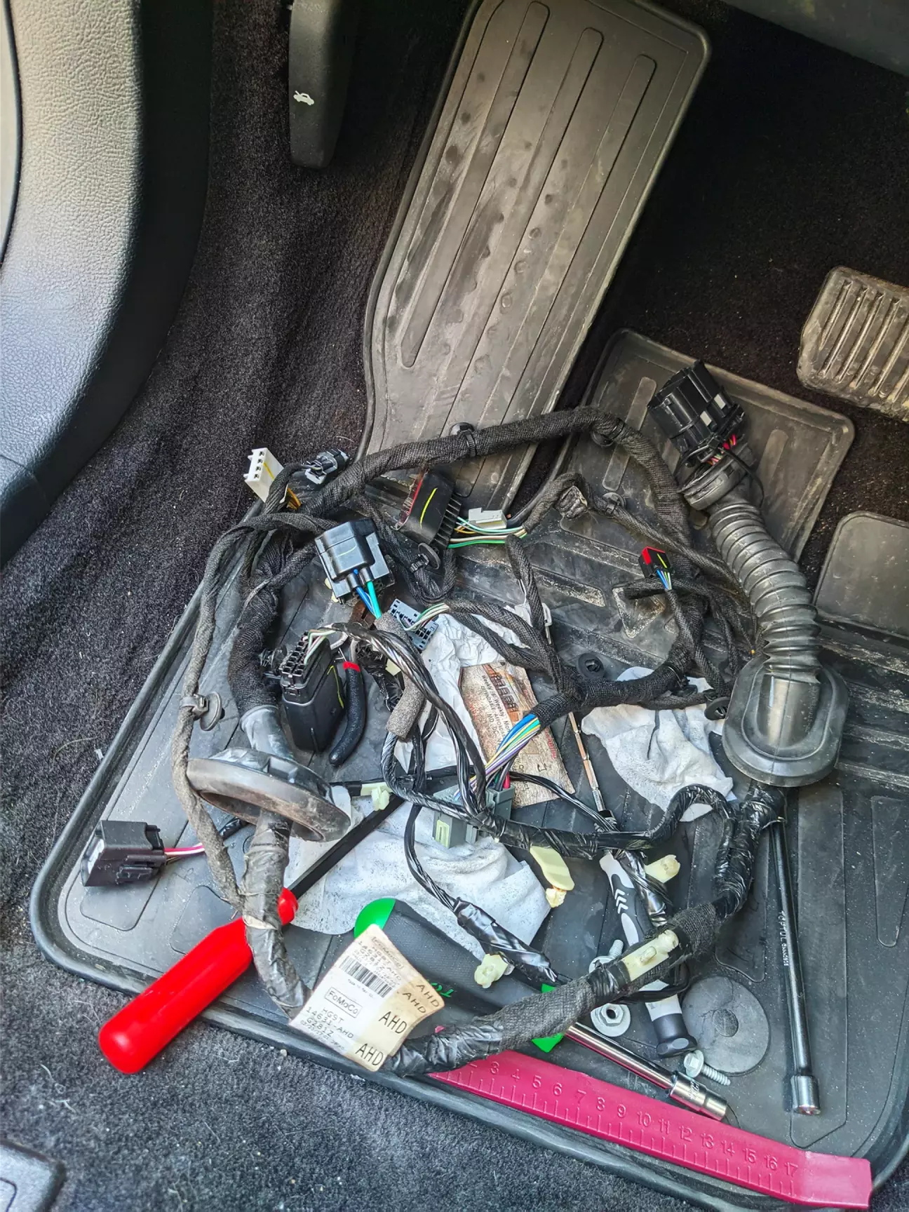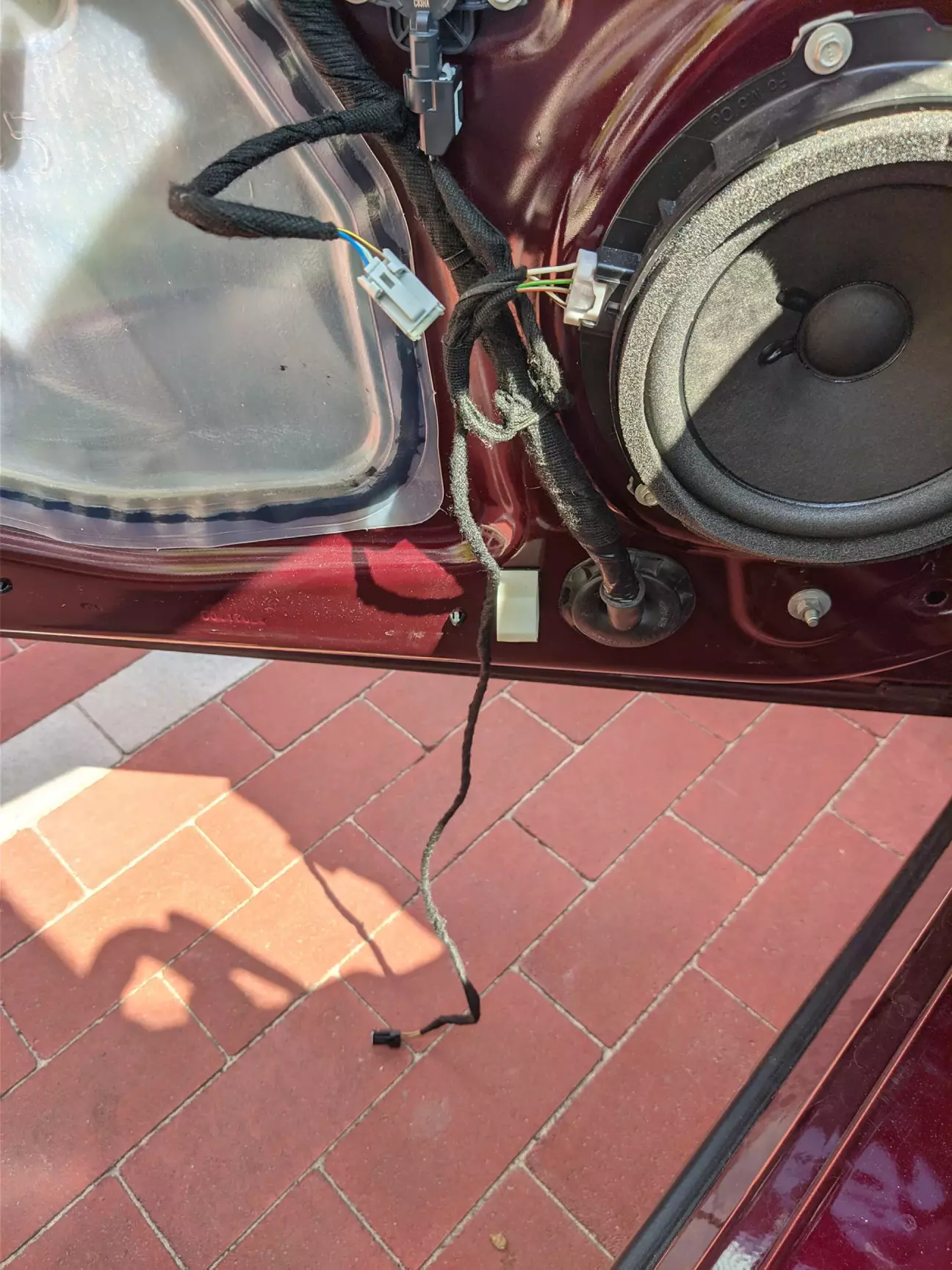 На фото ви можете побачити проводку для чотирьох дверей, бо я ще потім доставляв безключовий доступ. Радари BLIS, ручки з безключовим доступом, та максимальні передні дверні блоки 2019 року.