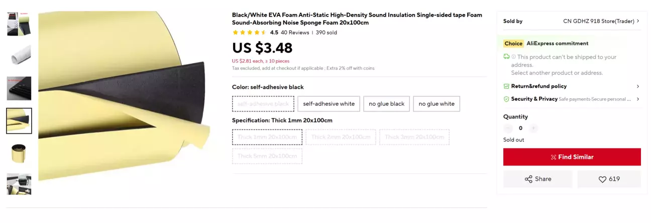 Для цього був замовлений ось такий спінений матеріал з Аліекспресу, нічого більш підходящого я не знайшов.