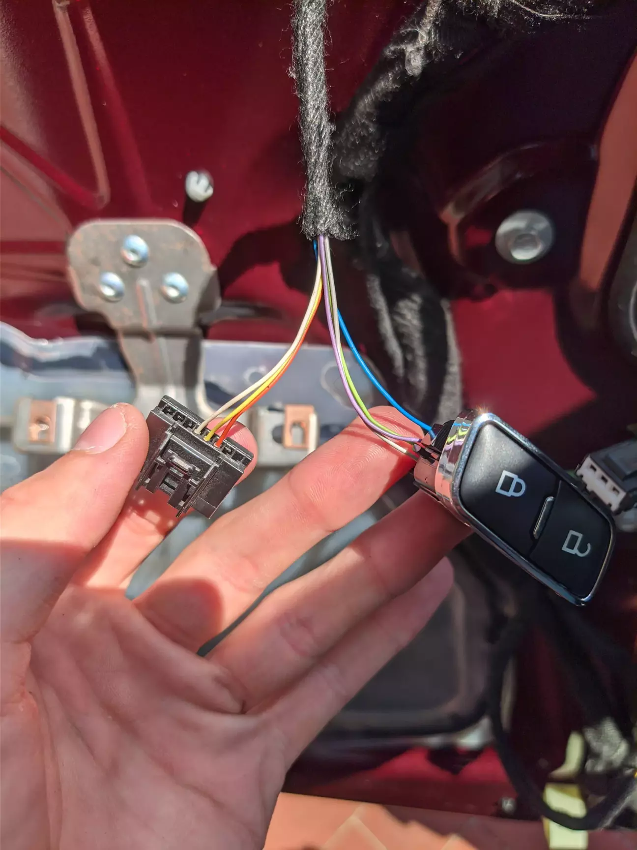 Так як в мене були бомж дзеркала, то і проводка в дверях була під бомж дзеркала. А враховуючи той факт що я ще хотів поставити собі безключовий доступ, вирішив просто поміняти свою бомж проводку на максимальну проводку.