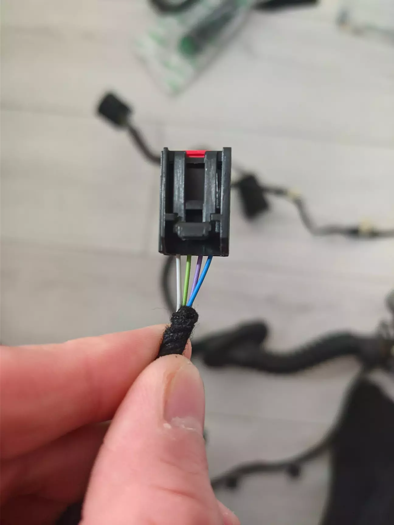 Ну і новий роз'єм, той що більший, примотав до проводки текстильною ізострічкою, на той випадок, якщо буду ставити пам'ять сидінь/дзеркал. В такому випадку я просто розпіную маленький роз'єм, і переставлю піни у великий роз'єм, під блок кнопок центрального замка з кнопками пам'яті.