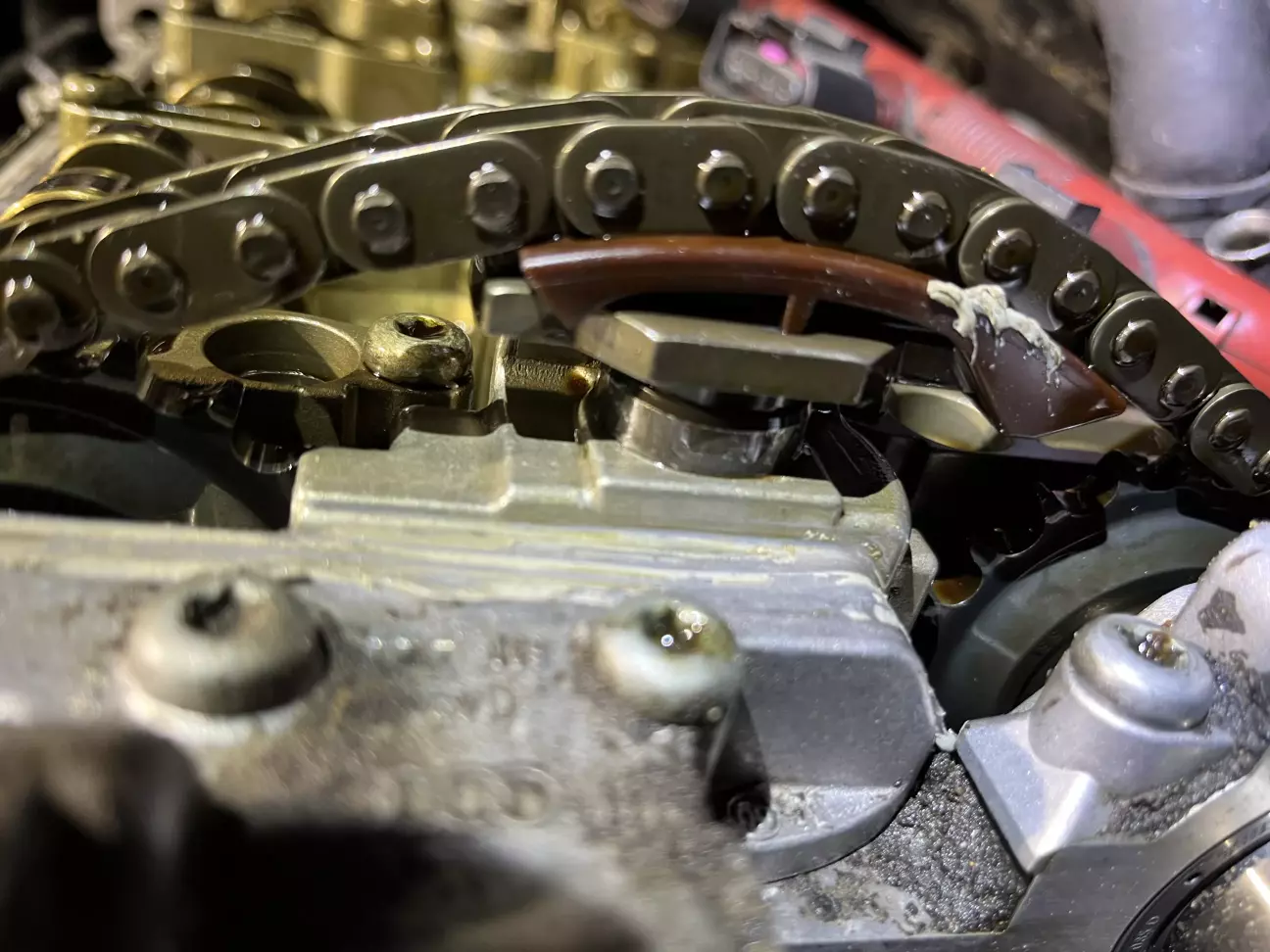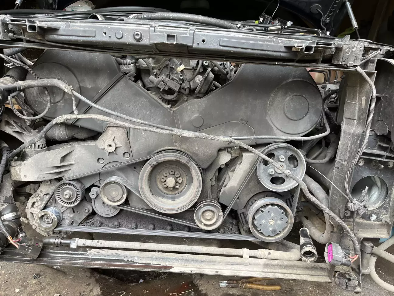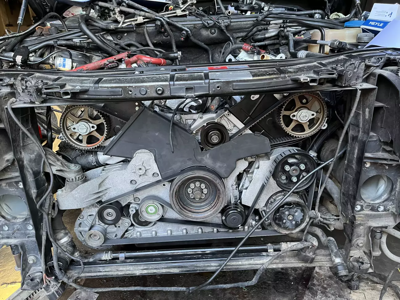 Після покупки авто було заплановано велике ТО із заміною ремня ГРМ, ланцюгів між розподільчими валами та переущільнення всього. При розборі було дефектовано кронштейн термостату який просто згнив. Був куплений інший з розборки.