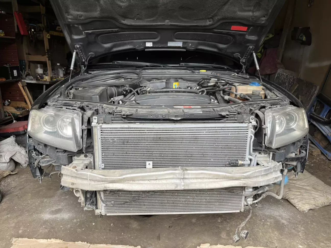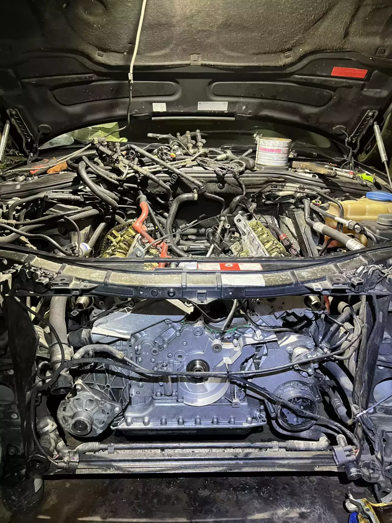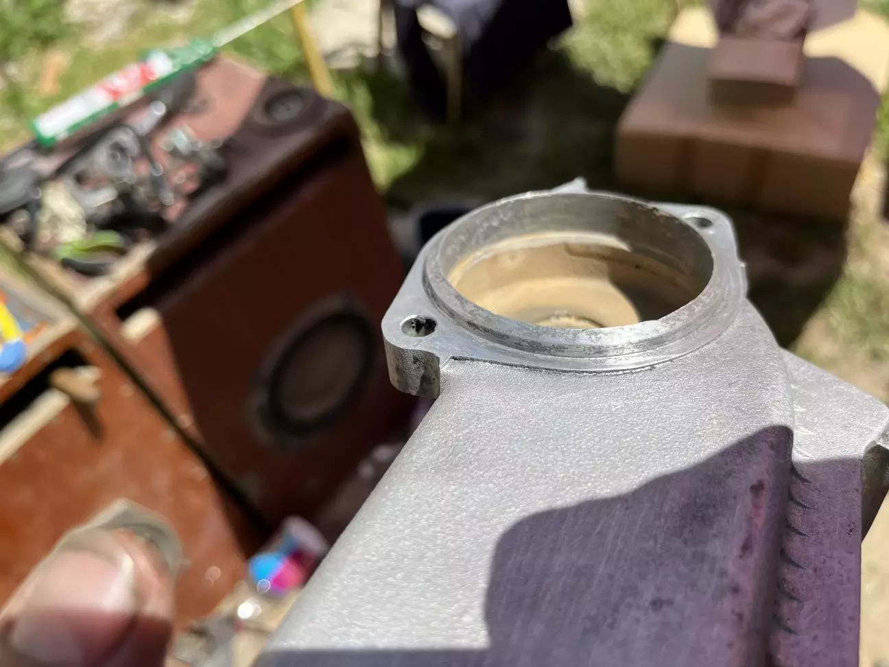 Після покупки авто було заплановано велике ТО із заміною ремня ГРМ, ланцюгів між розподільчими валами та переущільнення всього. При розборі було дефектовано кронштейн термостату який просто згнив. Був куплений інший з розборки.