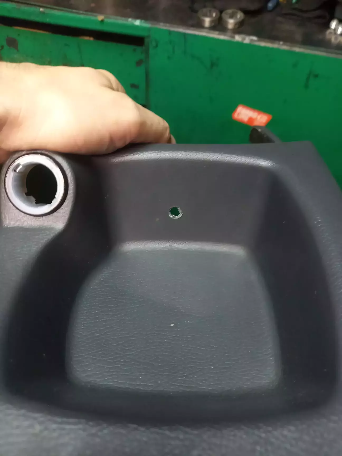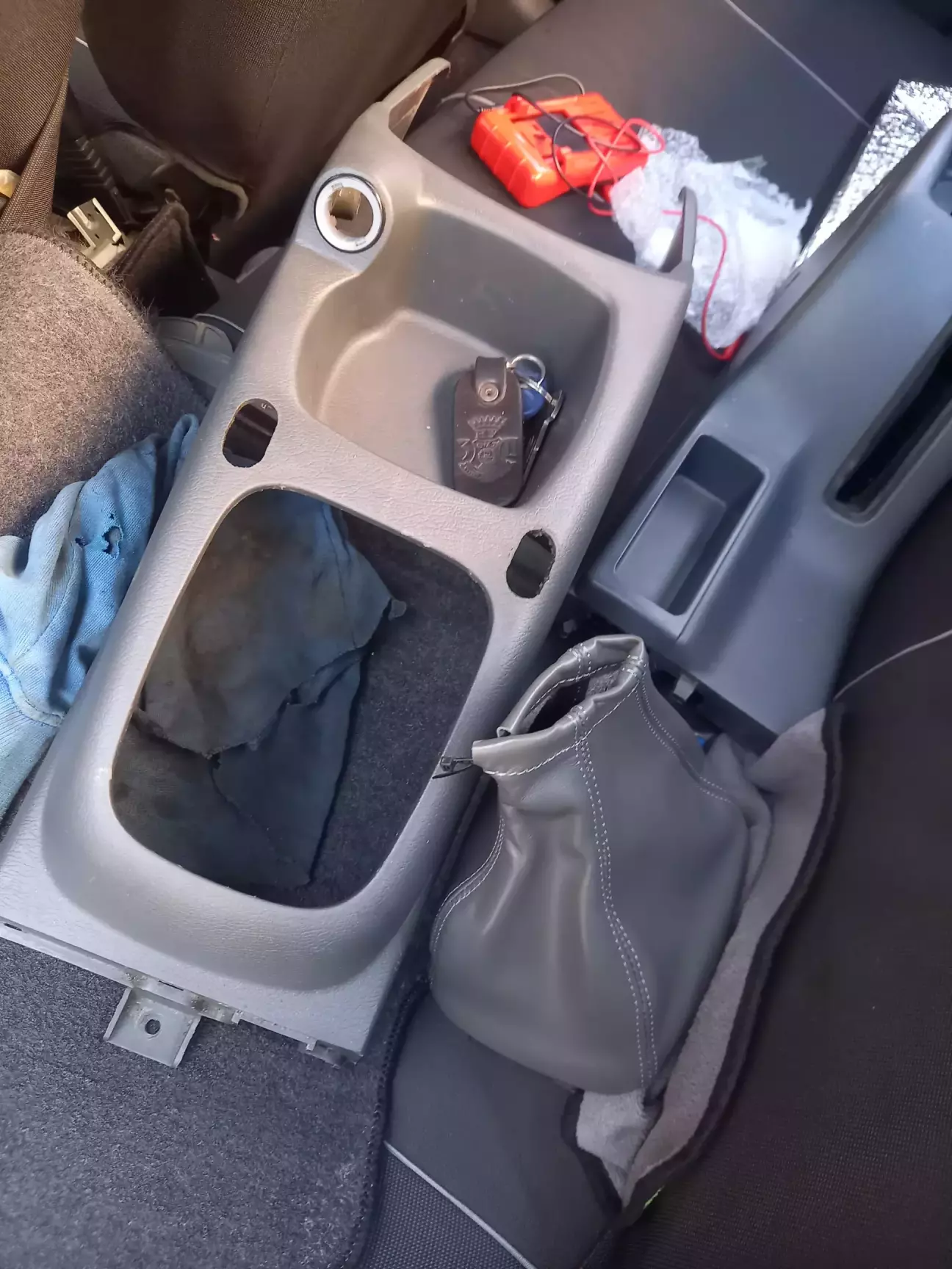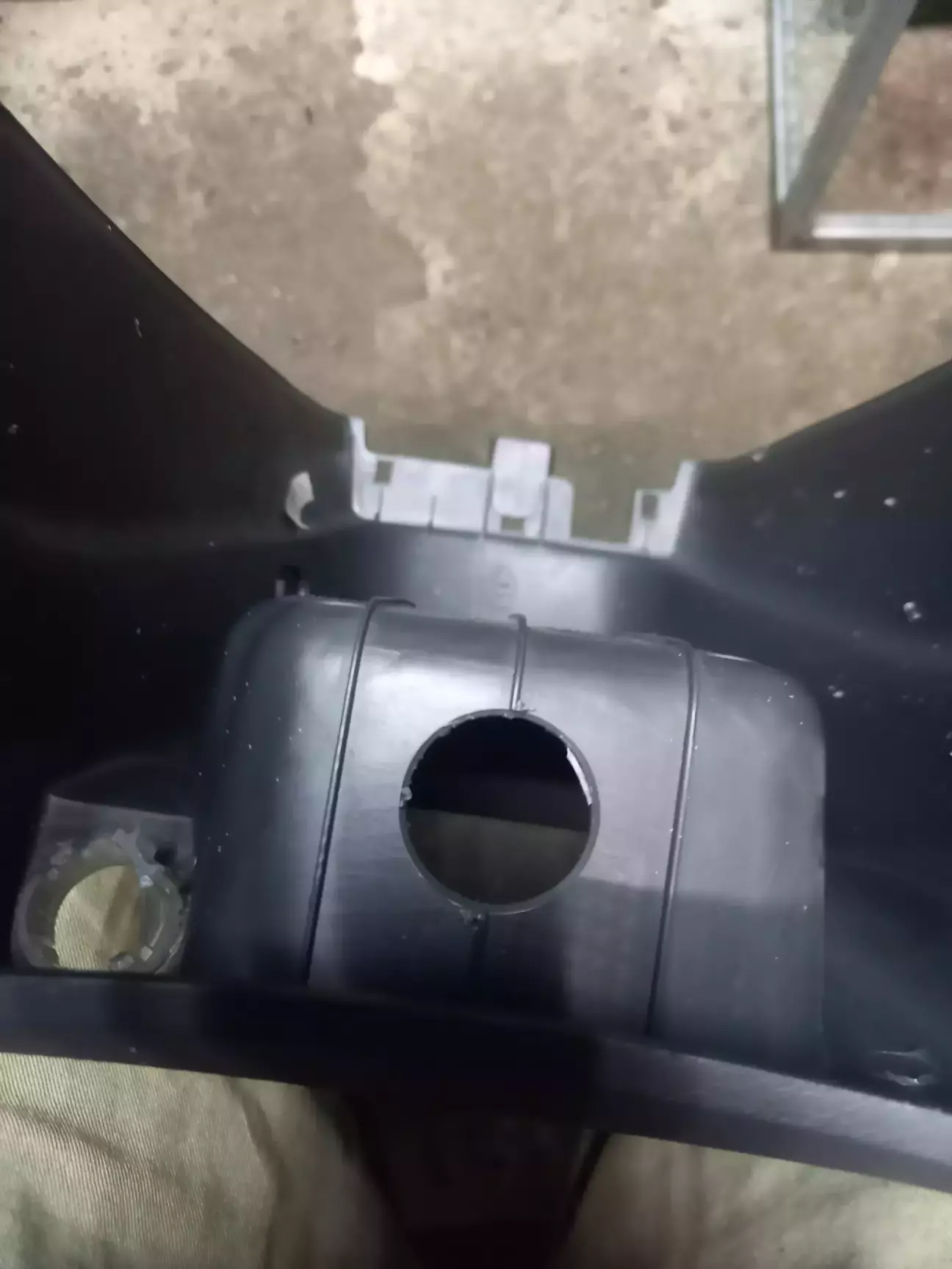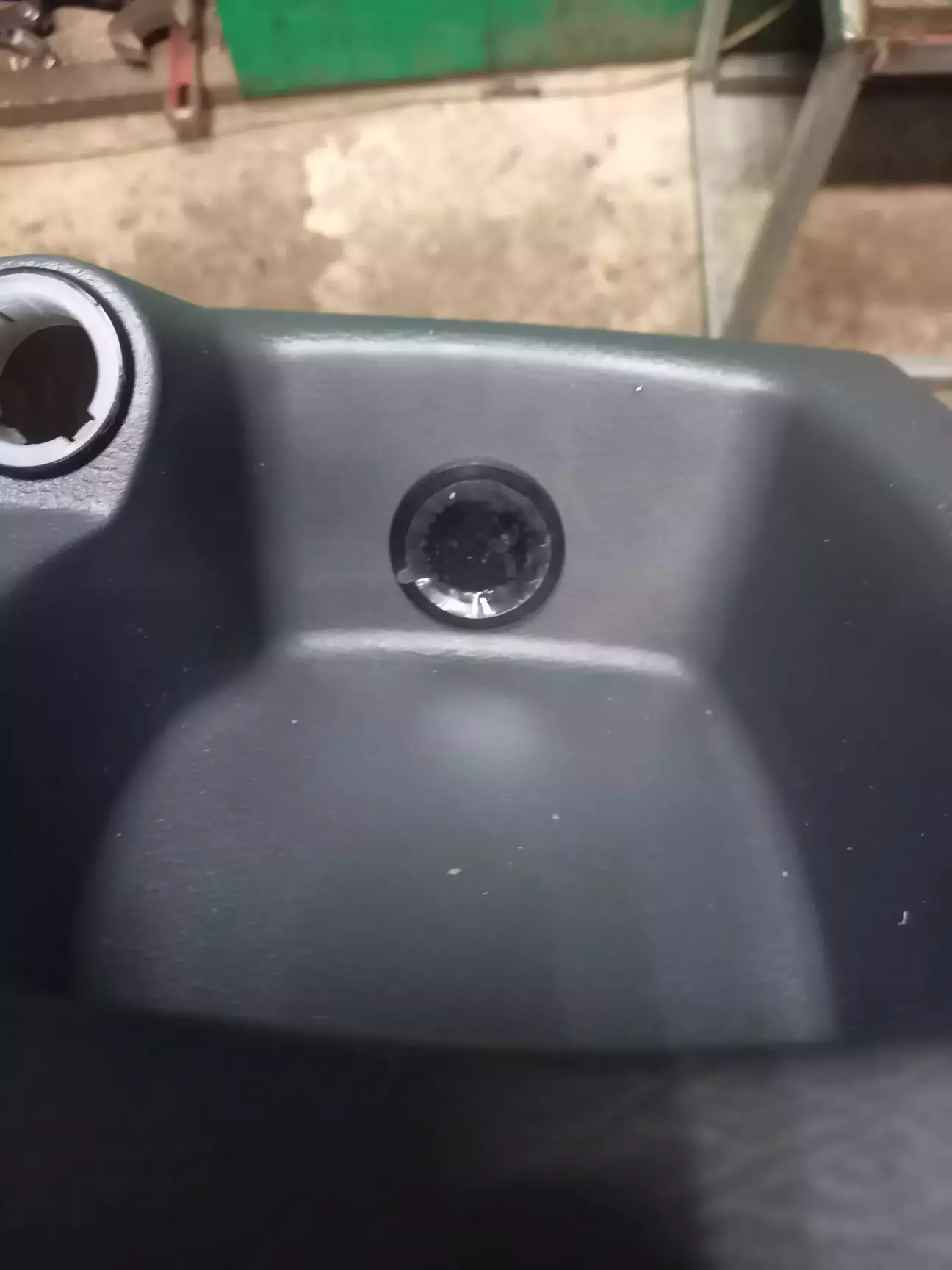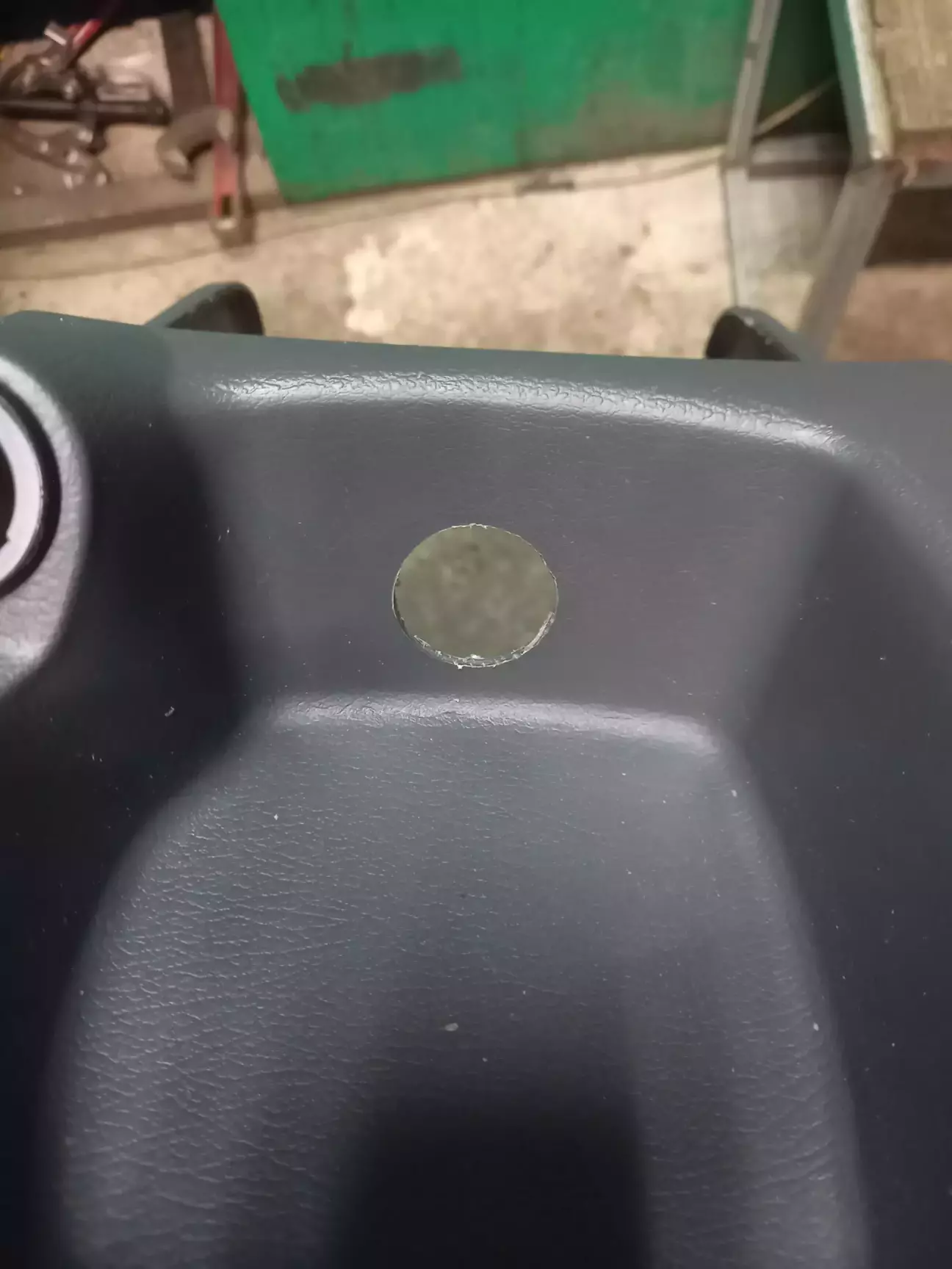 Намітив й просвердлив отвір посередині місця для дрібниць біля прикурювача. Розширив його до 30 мм, зачистив й датчик став, як по заводу.