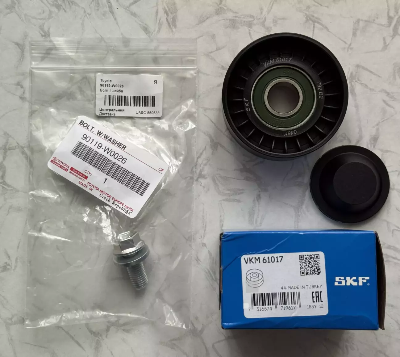 Отже, приймаю рішення міняти. Знаючи, що в плані підшипників добре себе зарекомендував SKF, зупинився саме на ньому - і, як виявилось, не прогадав. Коли отримав, перше приємне це напис на обоймі Made in Italy, сам ролик виготовлений у Туреччині.