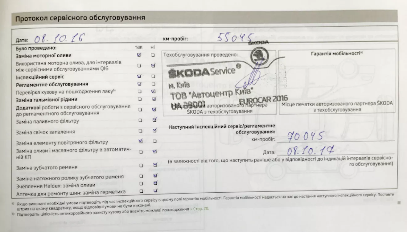В этот раз ТО сделал на пробеге 55 000 км. Официальная станция, свои расходники.