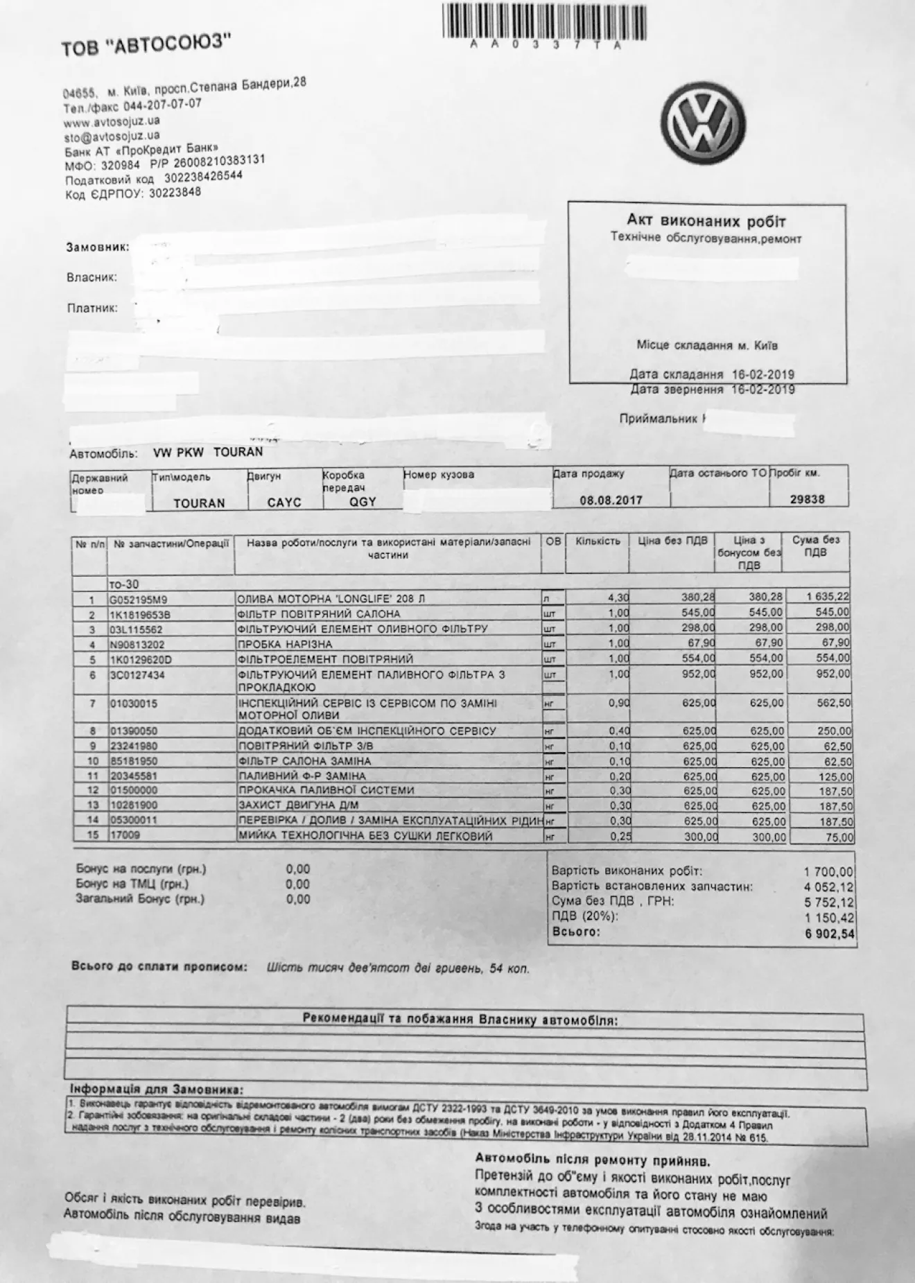 Пришло время делать ТО 30.000 км. Машина на гарантии, все работы на официальной станции.