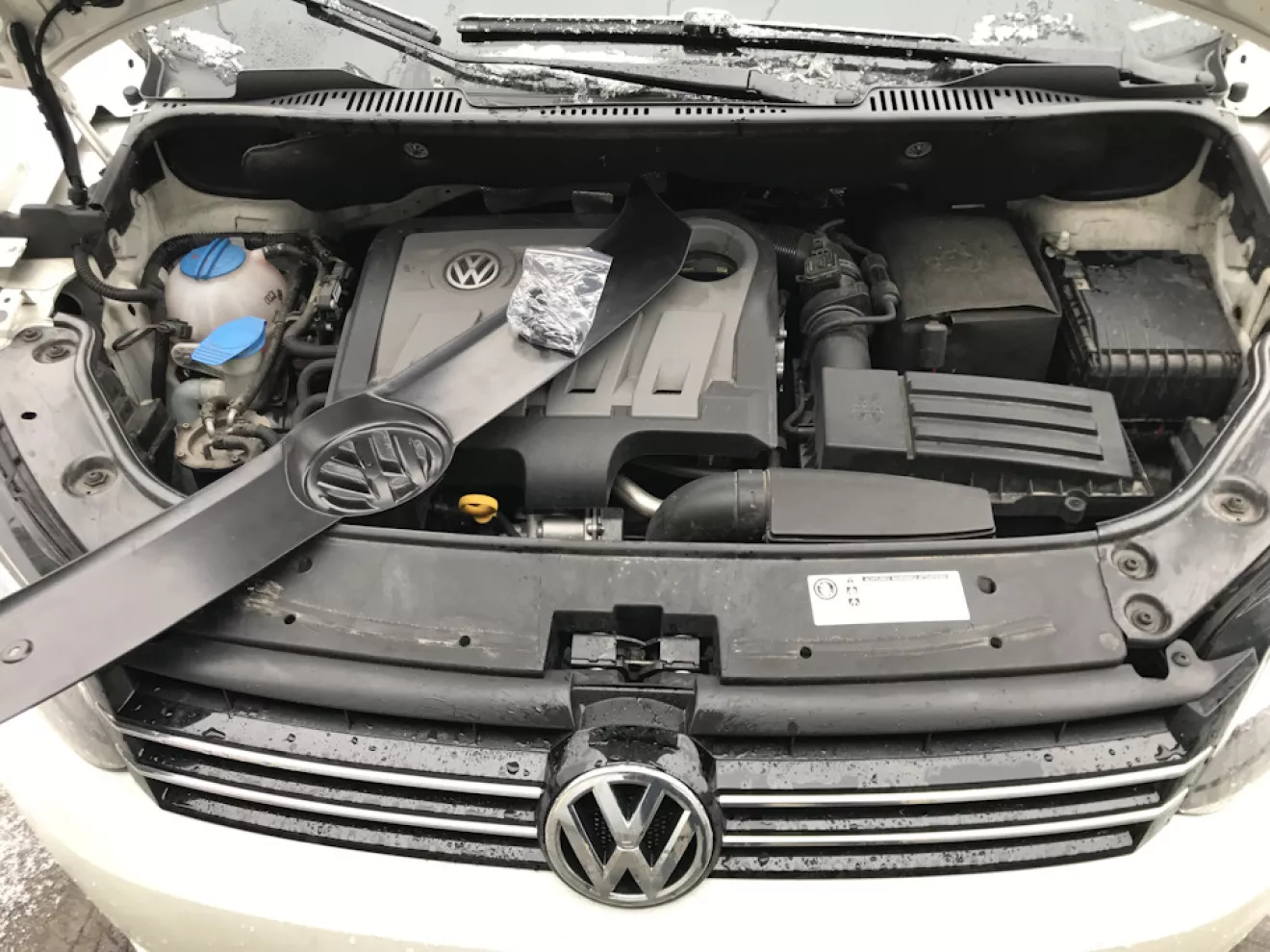 Нижнюю ставить не стал, потому что во-первых, на ней написано Caddy, во-вторых, пока пробовал ставить, потерял одно из креплений. А вот верхнюю поставил. Морозы спали, поэтому ещё не могу сказать, какой эффект от всего этого мероприятия, а визуально смотрите фото ниже.