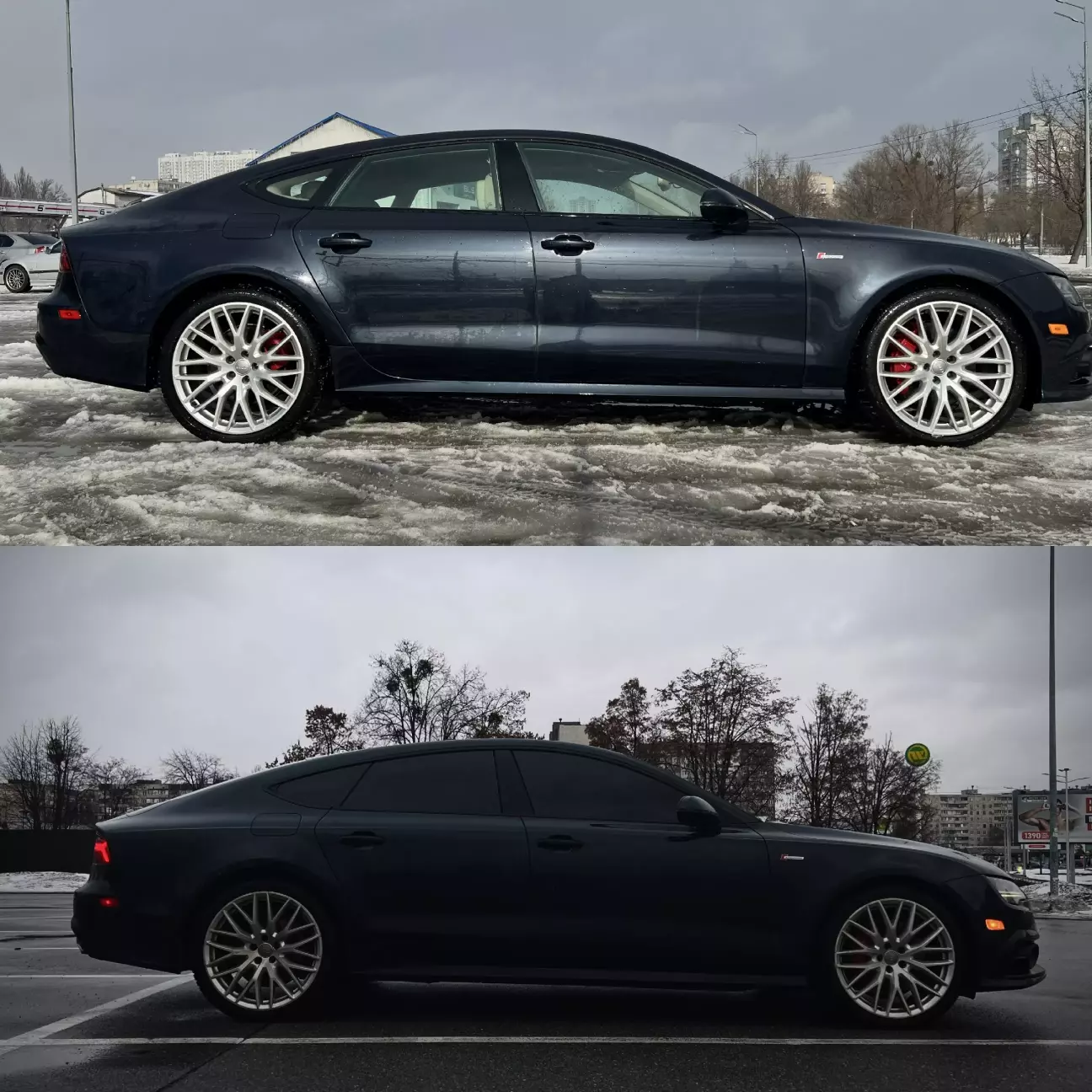 Паралельно замінили емблеми на чорні (поки що тільки передню, так як комплект, що я замовив на Алі, підійшов тільки наполовину - задні кільця хоч і були по розміру, але не приймали «анатомічну форму» кришки багажника. Тому було прийнятно рішення пофарбувати в чорний і встановити оригінальні), прибрали також емблеми 3.0T, A7 та quattro