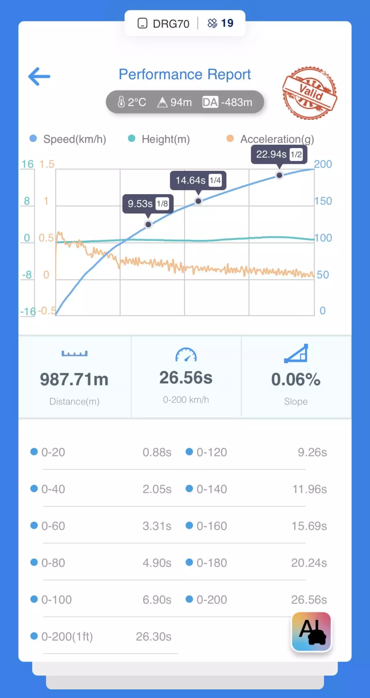 А далі ще цікавіше- 14 грудня два заміри поспіль, де перший заїзд- еталон, 6.9 до 100, 100-200 за 19.66: