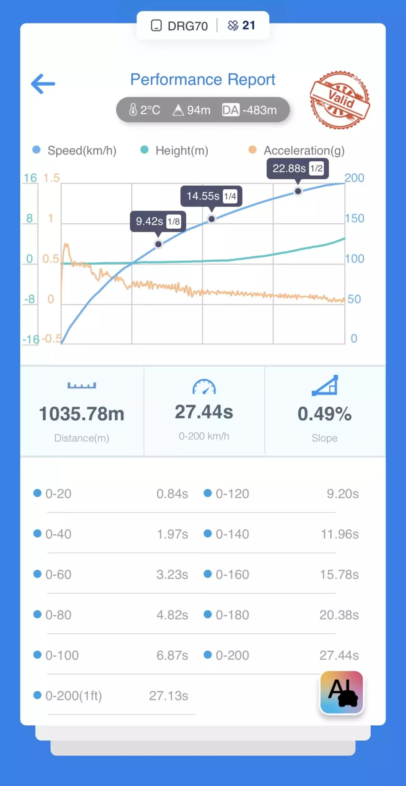 А ті ентузіасти, кому це справді цікаво побачать на графіках ще більше корисної інформації- наприклад проходження 1/4 і 1/2 милі.