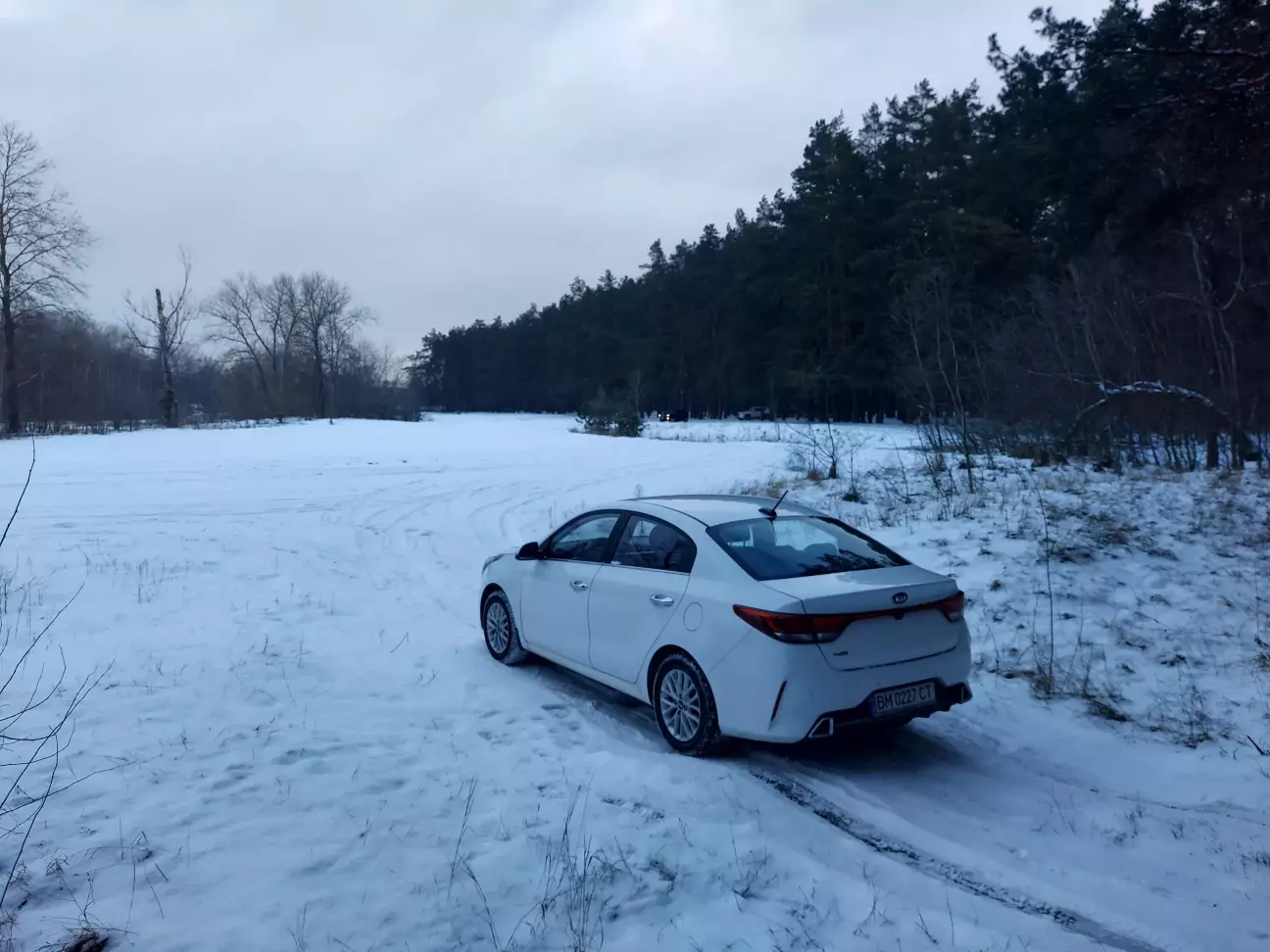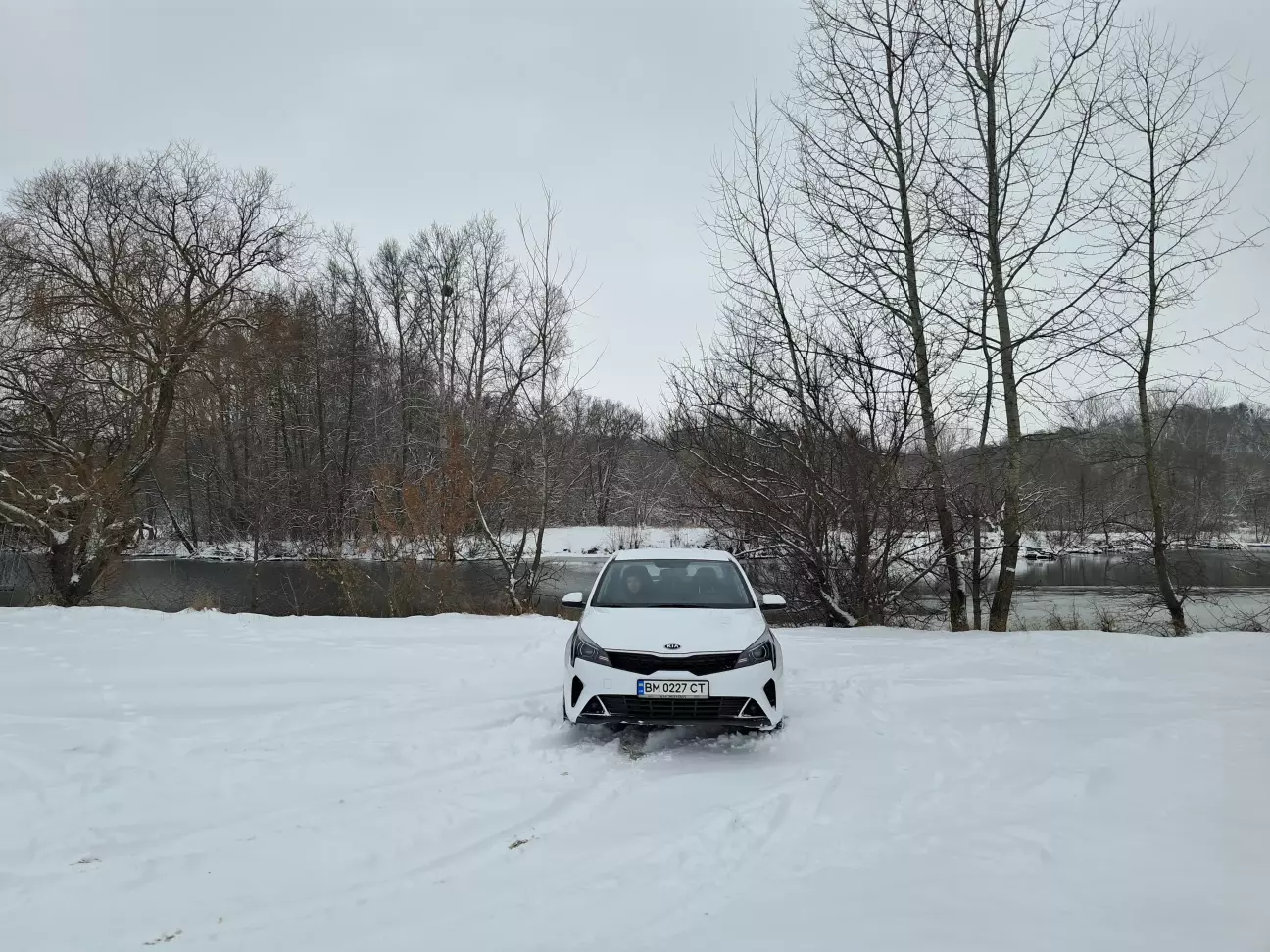 Хотіли проїхати до річки, але під снігом там лід а під ним вода, тож спинився тут.