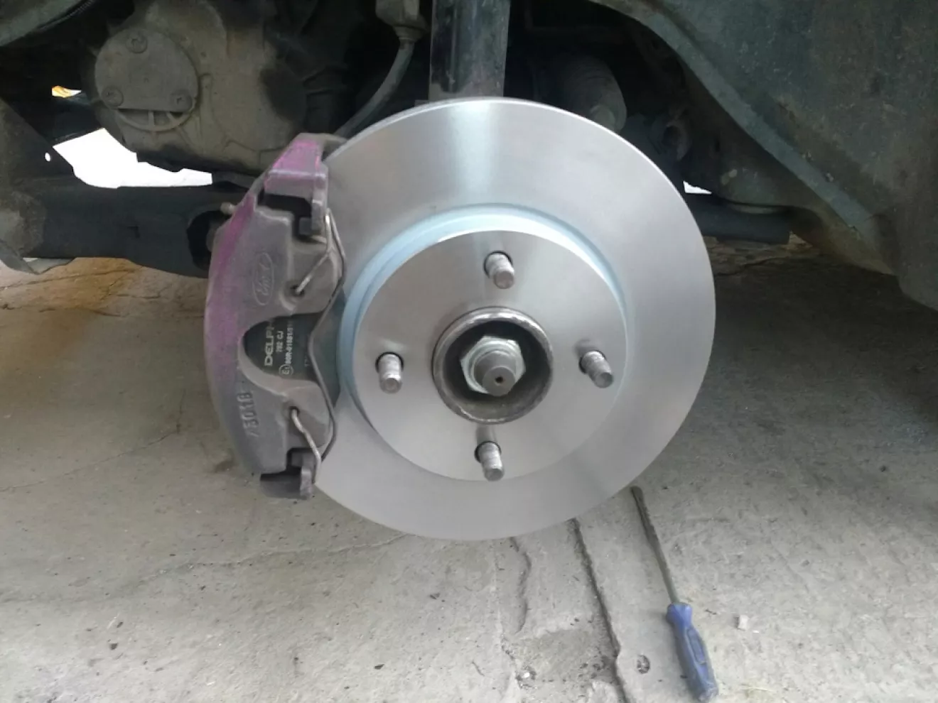 Всем доброго времени суток, замена лёгкая, но зато какая полезная, от дрожания руля при торможении, а также заодно и наконечник заменил. Итак домкратим, снимаем колеса, откручиваем два болта, снимаем суппорта, меняем диски и все. Ездим наслаждаемся тормозами без вибрации