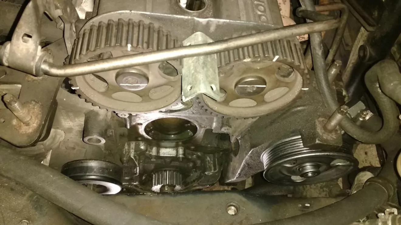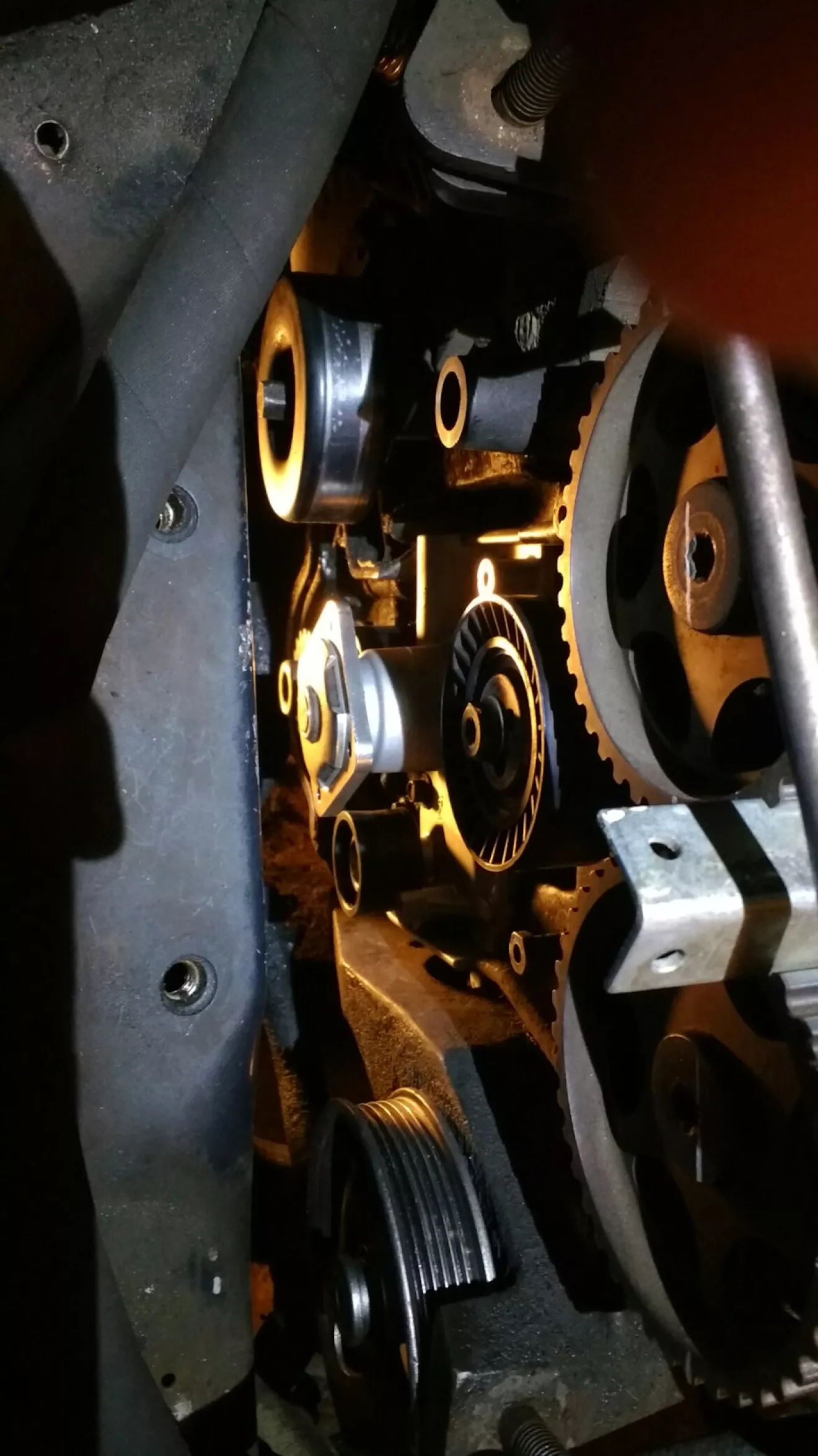 По замене особо описывать не чего, только из нюансов, гидроусилитель не откручивал просто когда слил антифриз отсоединил патрубок, и когда открутил помпу потянул немного вперёд, патрубок вылез вместе с хомутом, так же не снимал клапонную крышку, просто выставил все по меткам и зафиксировал распредвалы, а так все просто, самое сложное было сорвать болт шкива коленчатого вала.