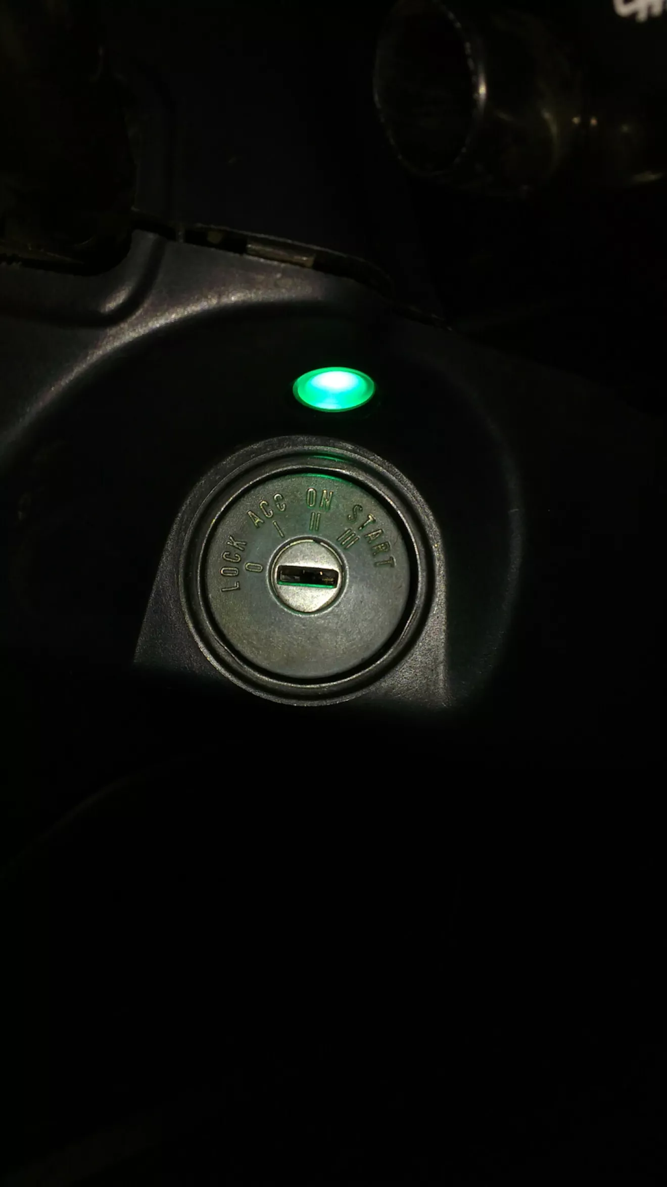 Всем привет! Каждый раз когда, что то делаю по салону, всегда замечал зеленый глазок, и думал, нужно разобрать и посмотреть почему он не горит. В общем при очередной уборки не выдержал разобрал, оказалось не лампочки не цоколя нет, только торчат два обрезанных провода. Проверил провода все работает, взял цоколь вставил диод, подключил к проводам, все работает как положено, открыл дверь горит, закрыл через 30сек.Не горит. Теперь только радует, в темное время суток, нужно будет еще замутить зелёную подсветку в ноги, чтоб тоже через 30 сек. тухла. Есть теперь от чего запитатся.